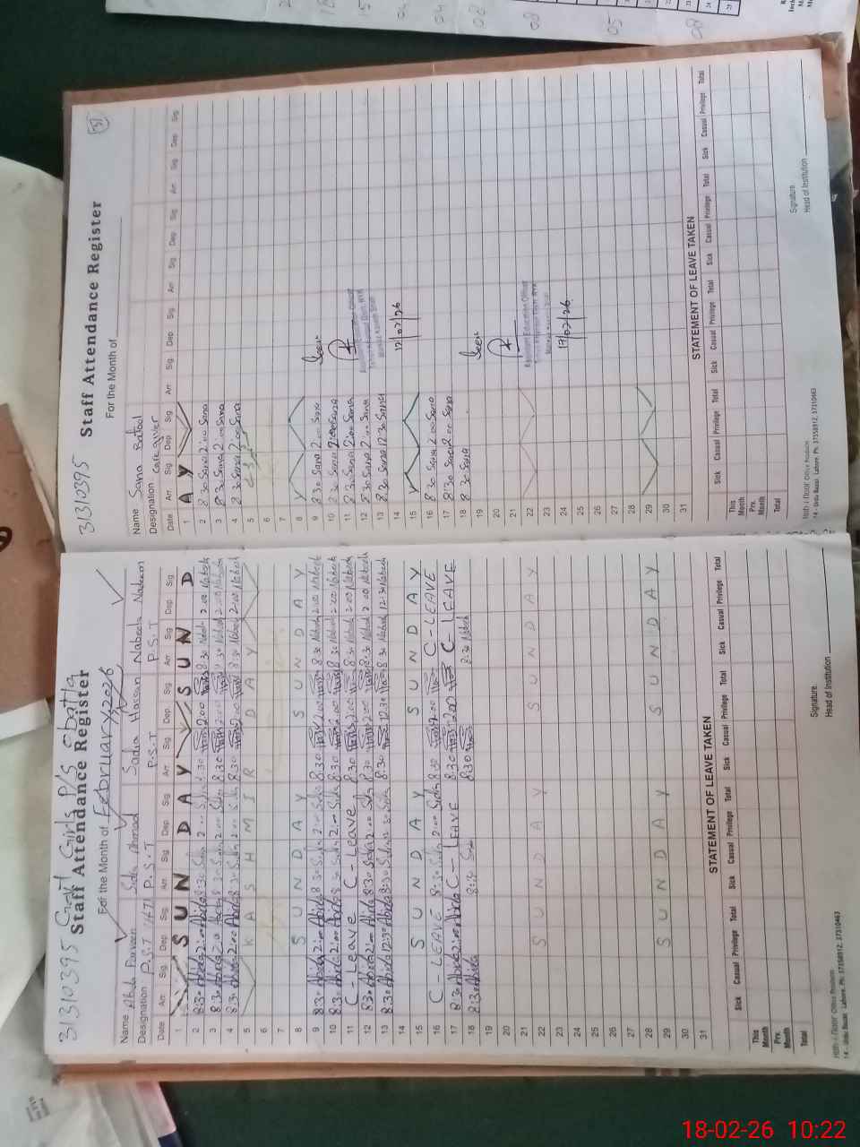| Leave | Duty | Absent | Maternity | Medical | Ex- Pak |