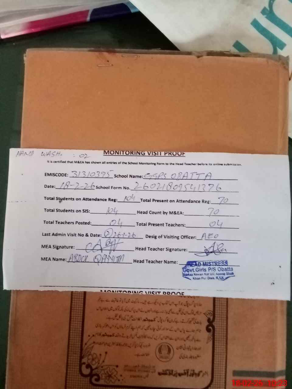 | EMIS Code: 31310395 | Name of School: GGPS OBATTA (After Noon) | |||