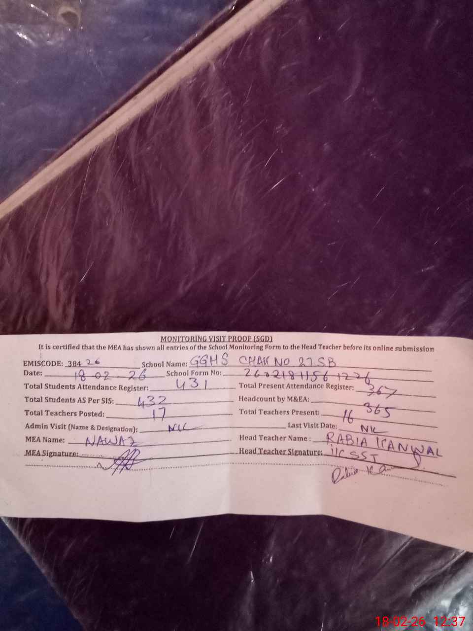 | EMIS Code: 38420066 | Name of School: GGHS CHAK NO.27 SB | |||