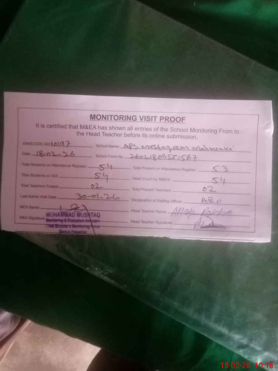 | EMIS Code: 39210197 | Name of School: GPS MUSTAQEEM MAHMONKA P/O PAKPATTAN | |||