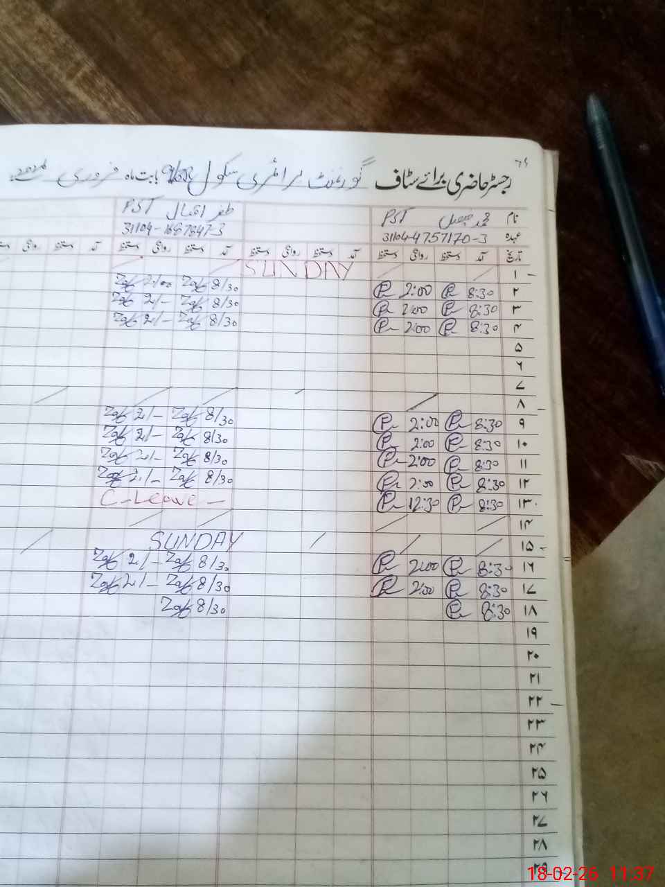| CNIC | Full Name | Designation | R/C | Absence During Last Calender Month |