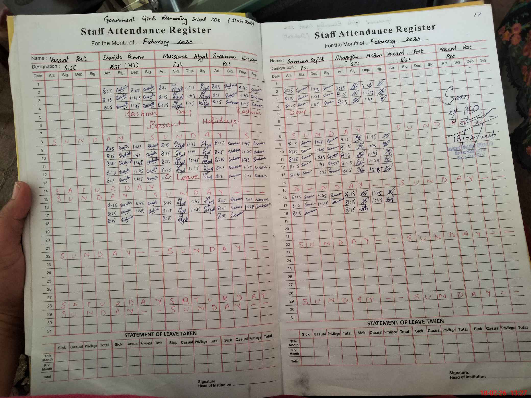 | Attendance Register | Head Teacher | MEA with School | Visit Proof |