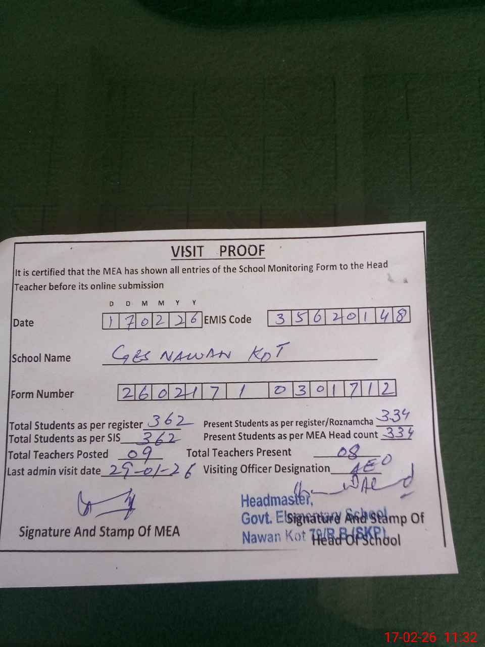 | EMIS Code: 35620148 | Name of School: GES NAWAN KOT CHAK NO. 79/RB | |||