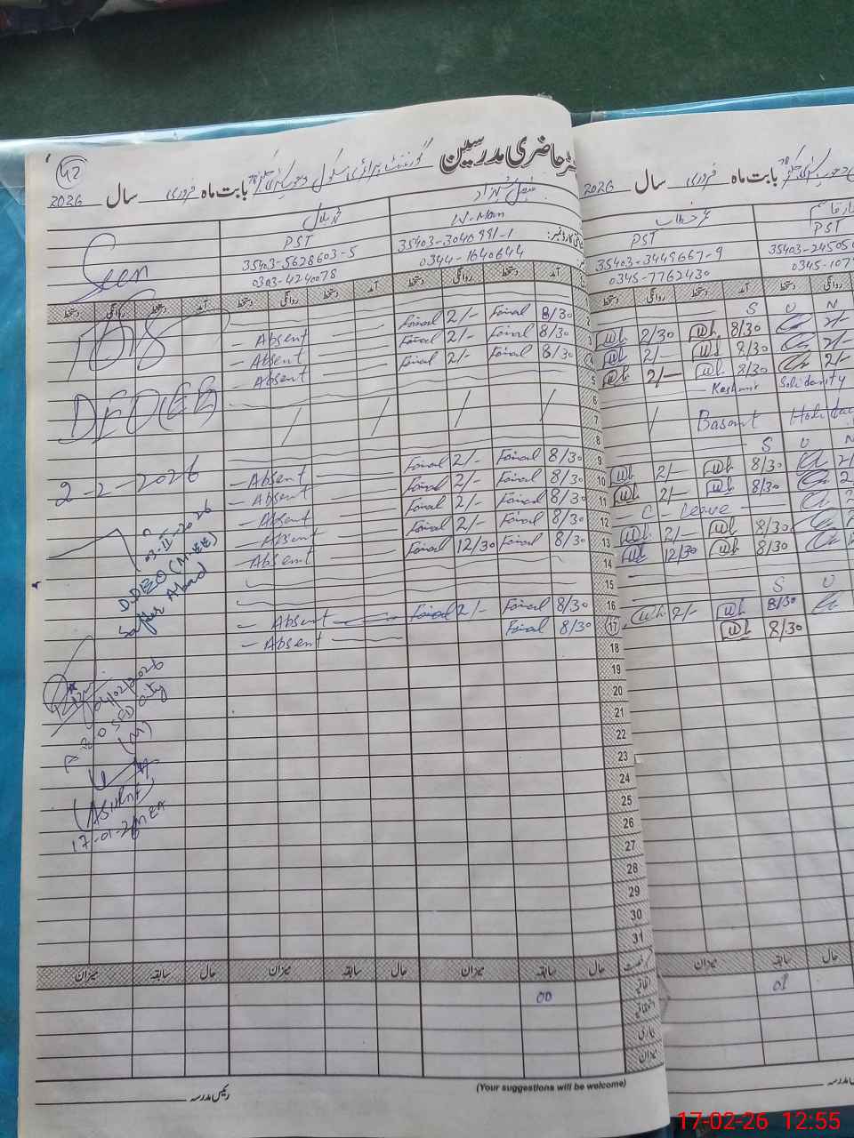 | Name: AB**** RA**** Designation: (School Headmaster's/Headmistress's) PST Phone/Cell Number: 03**** |