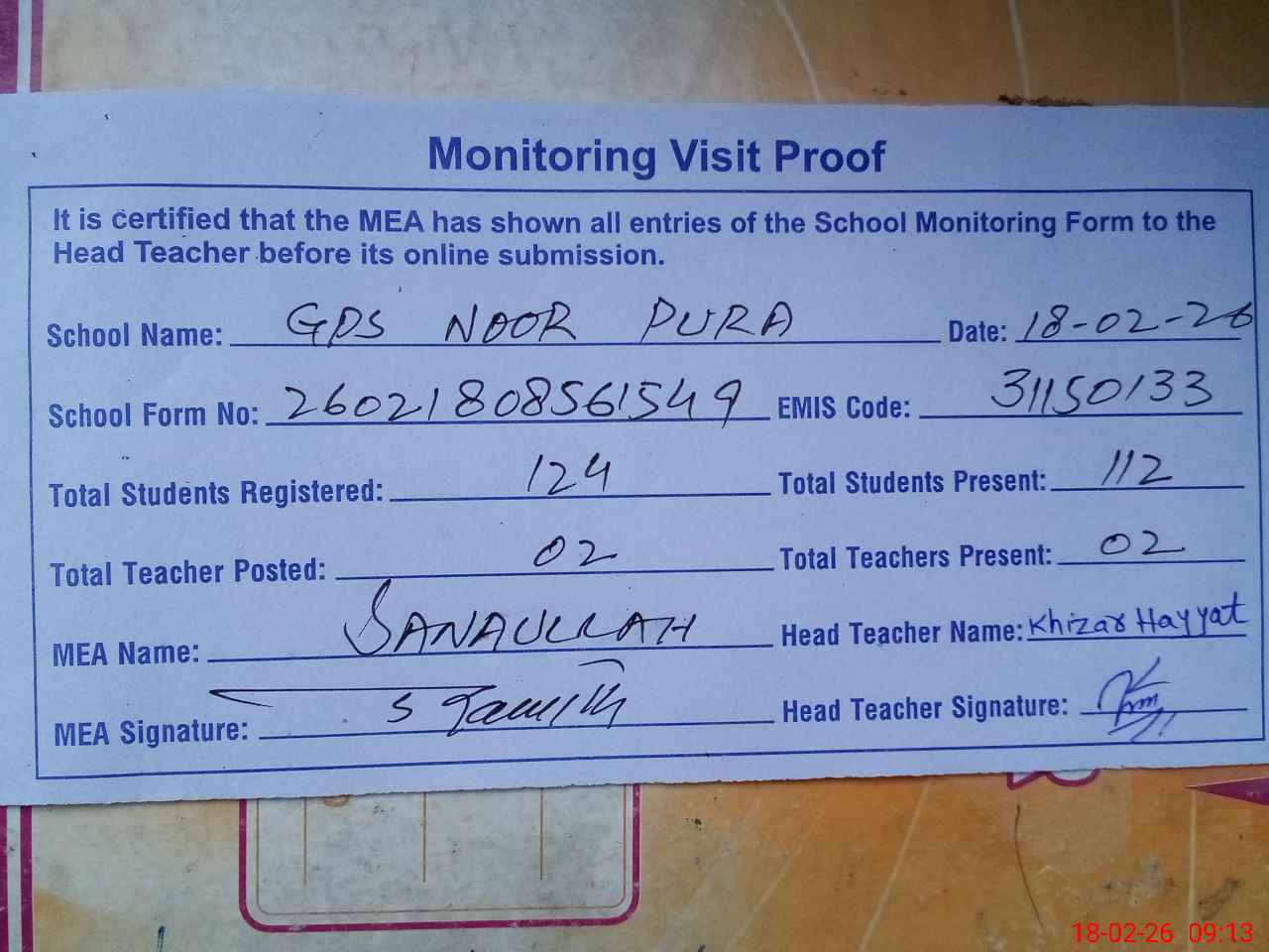 | EMIS Code: 31150133 | Name of School: GPS NOOR PUR | |||