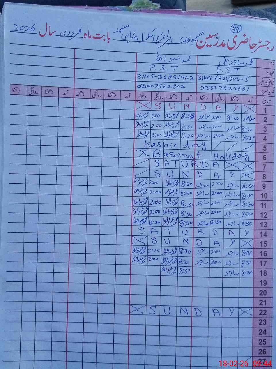 | Name: Mu**** Sa**** Al**** Designation: (School Headmaster's/Headmistress's) PST Phone/Cell Number: 03**** |