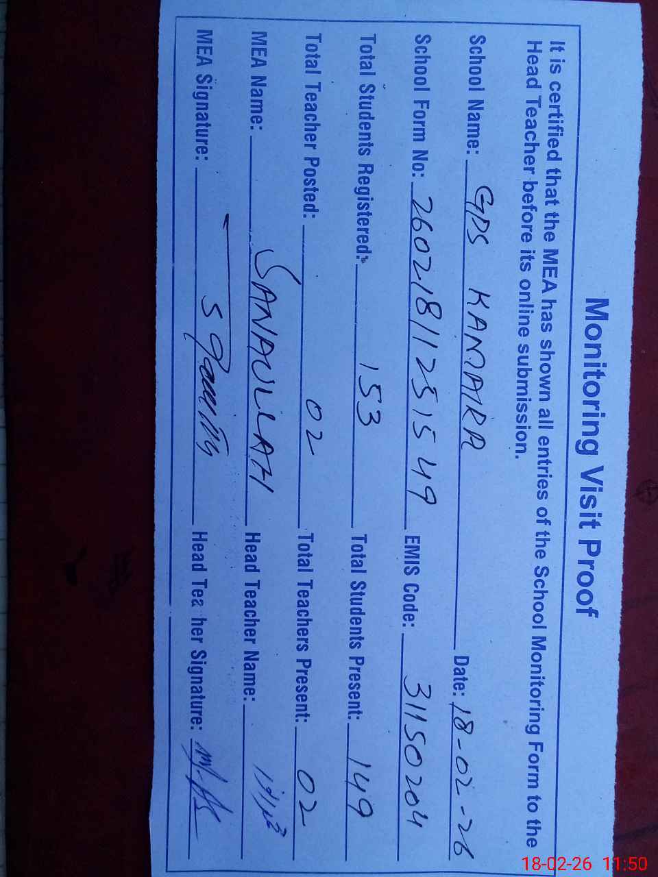 | EMIS Code: 31150204 | Name of School: GPS KAMAIRA | |||