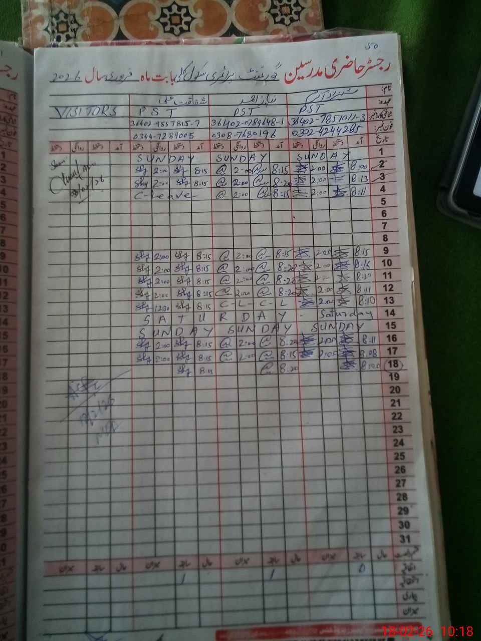 | Name: SH**** AK**** Designation: (School Headmaster's/Headmistress's) PST Phone/Cell Number: 03**** |