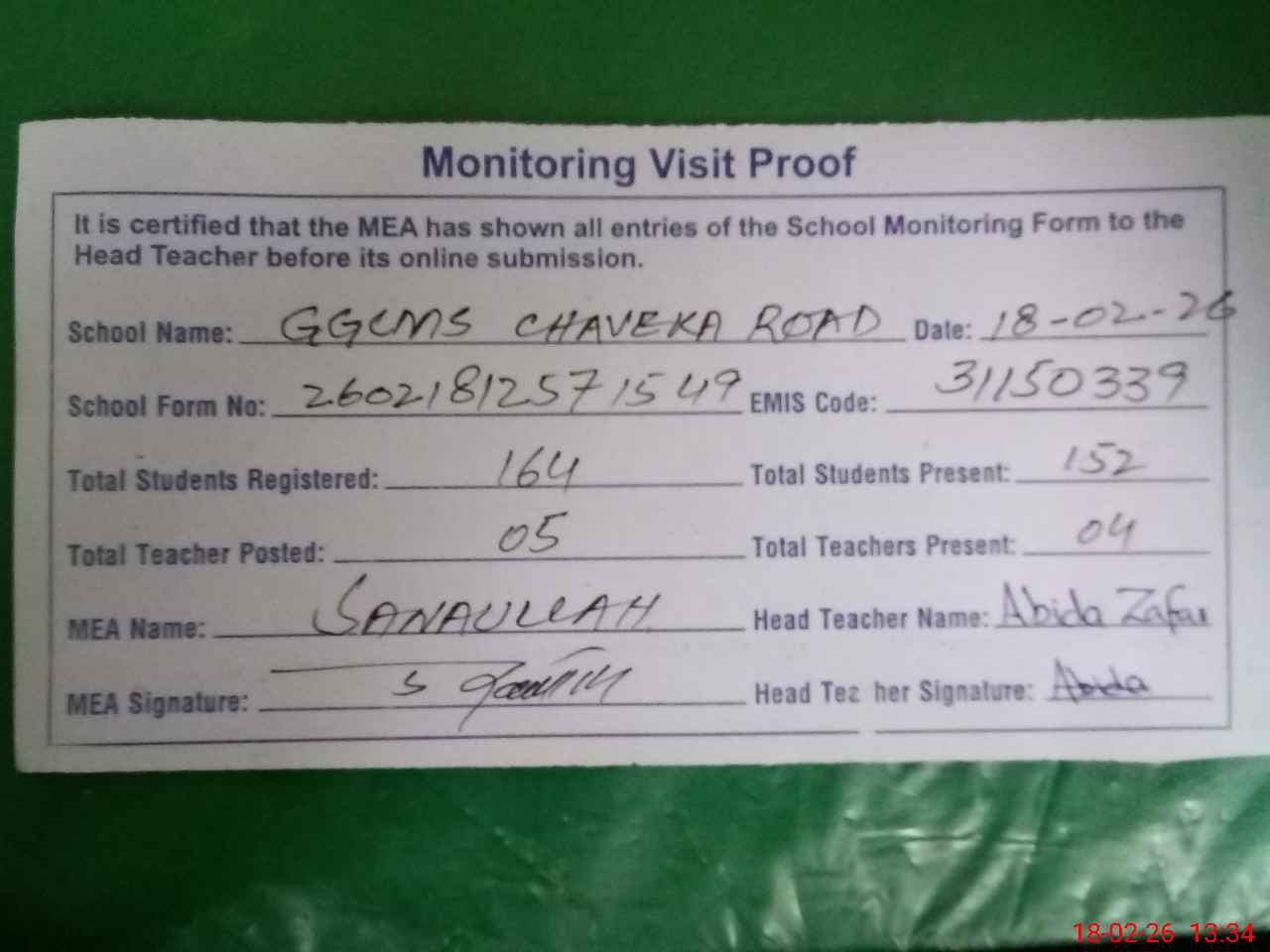 | Certified that this School was Inspected by the Undersigned MEA/DMO Today and the Information Stated Above is as Per Record. | |||||
