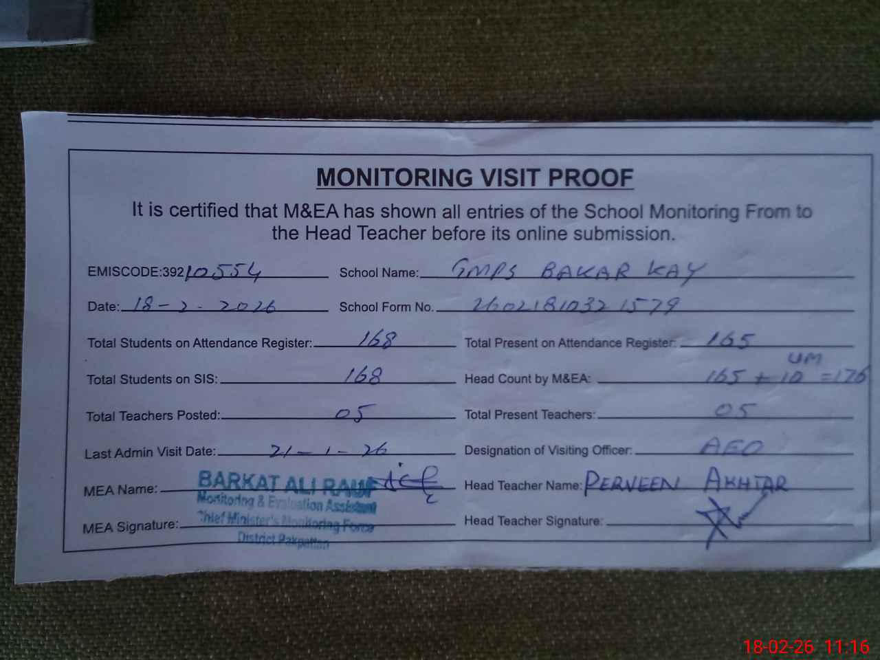 | EMIS Code: 39210554 | Name of School: GMPS BAKAR KAY | |||