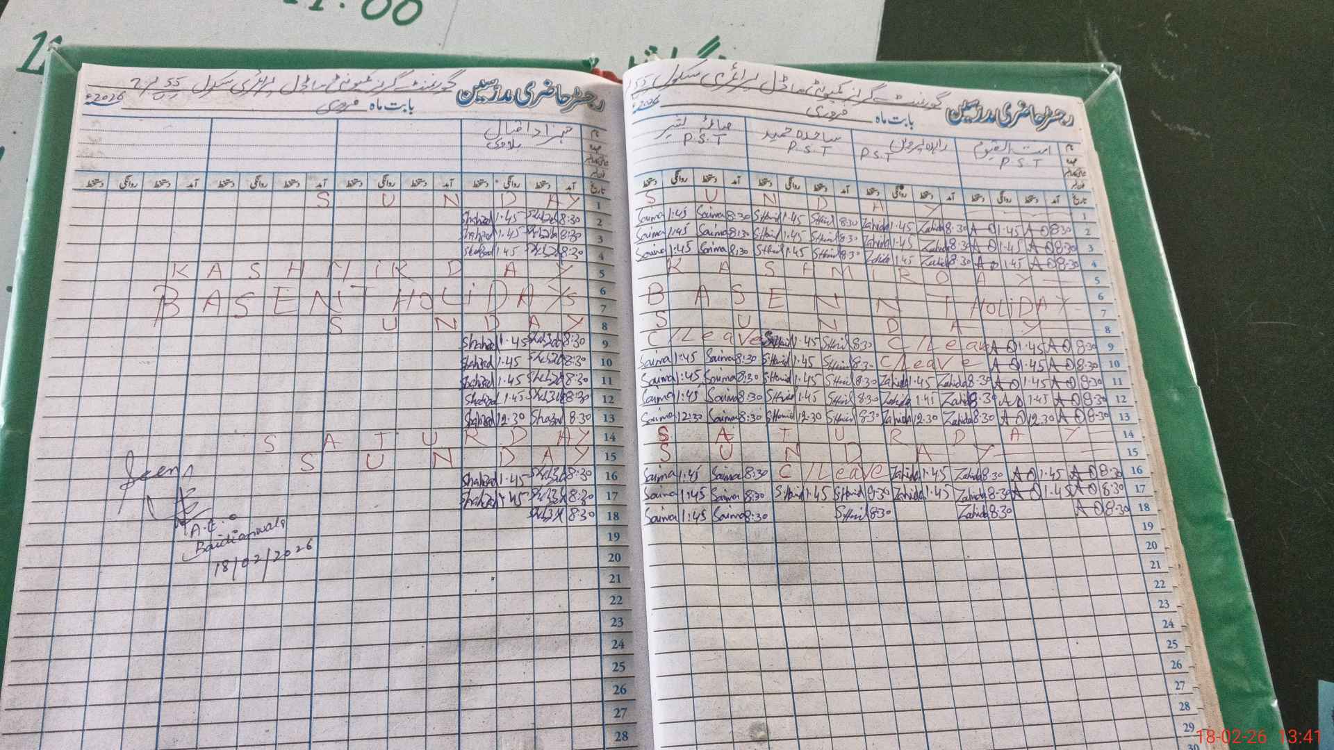 | Leave | Duty | Absent | Maternity | Medical | Ex- Pak |