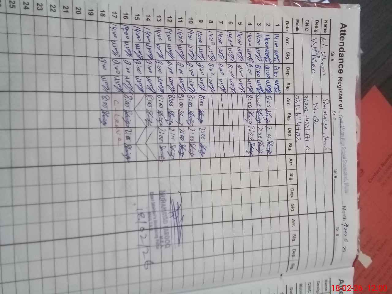 | CNIC | Full Name | Designation | R/C | Absence during last cal. month |