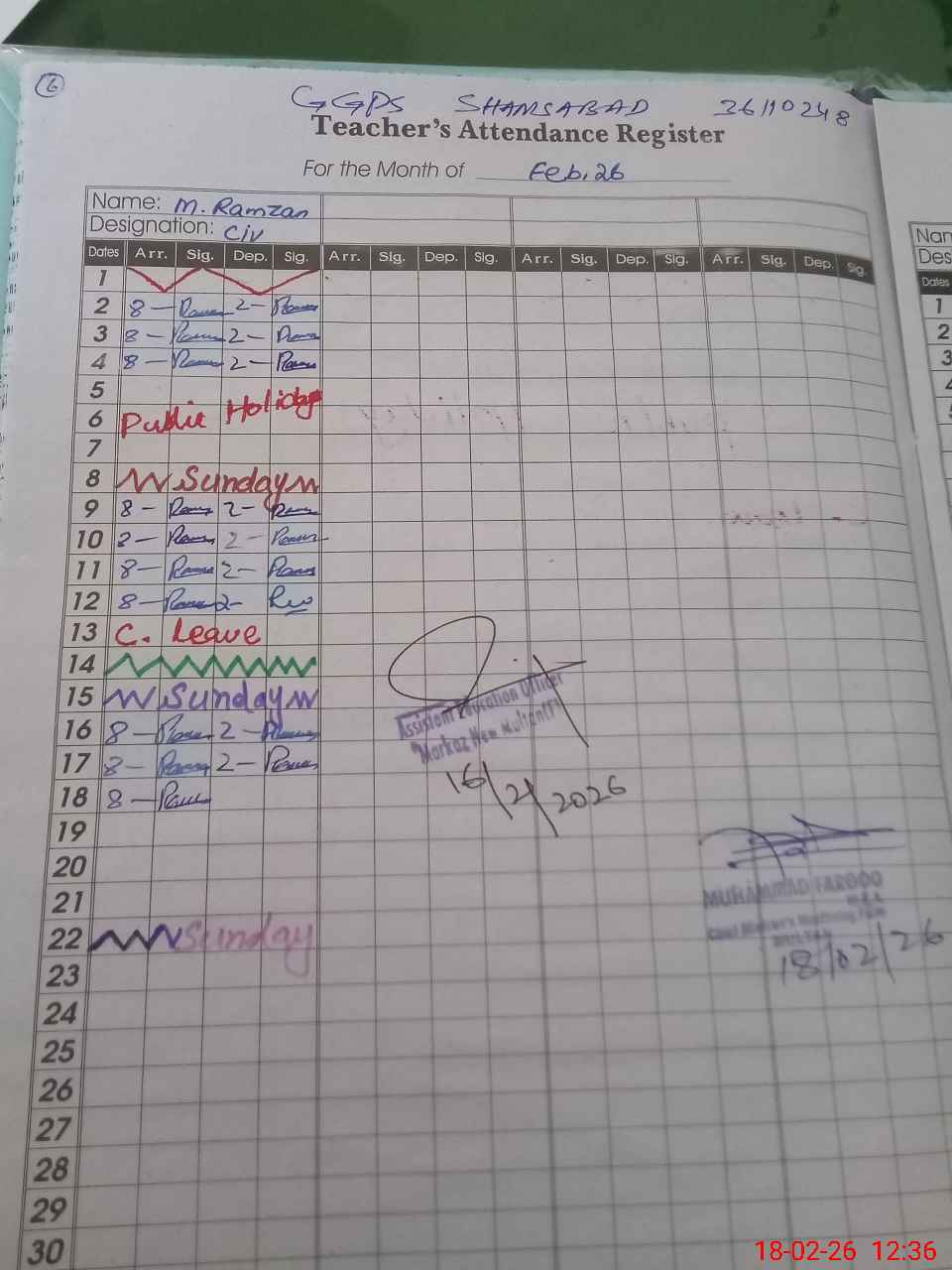 | EMIS Code: 36110248 | Name of School: GGPS SHAMSABAD MULTAN | |||