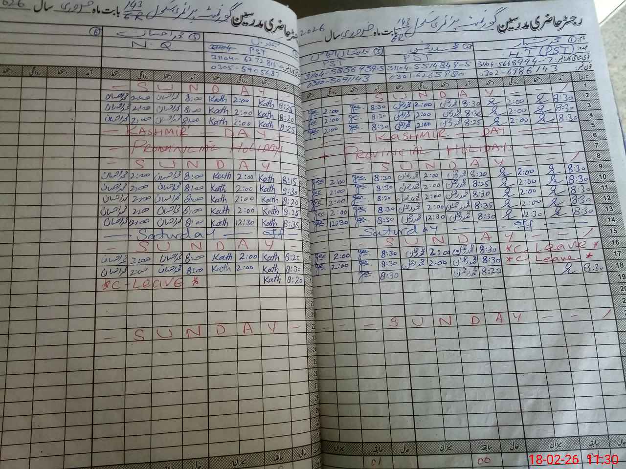 | CNIC | Full Name | Designation | R/C | Absence During Last Calender Month |
