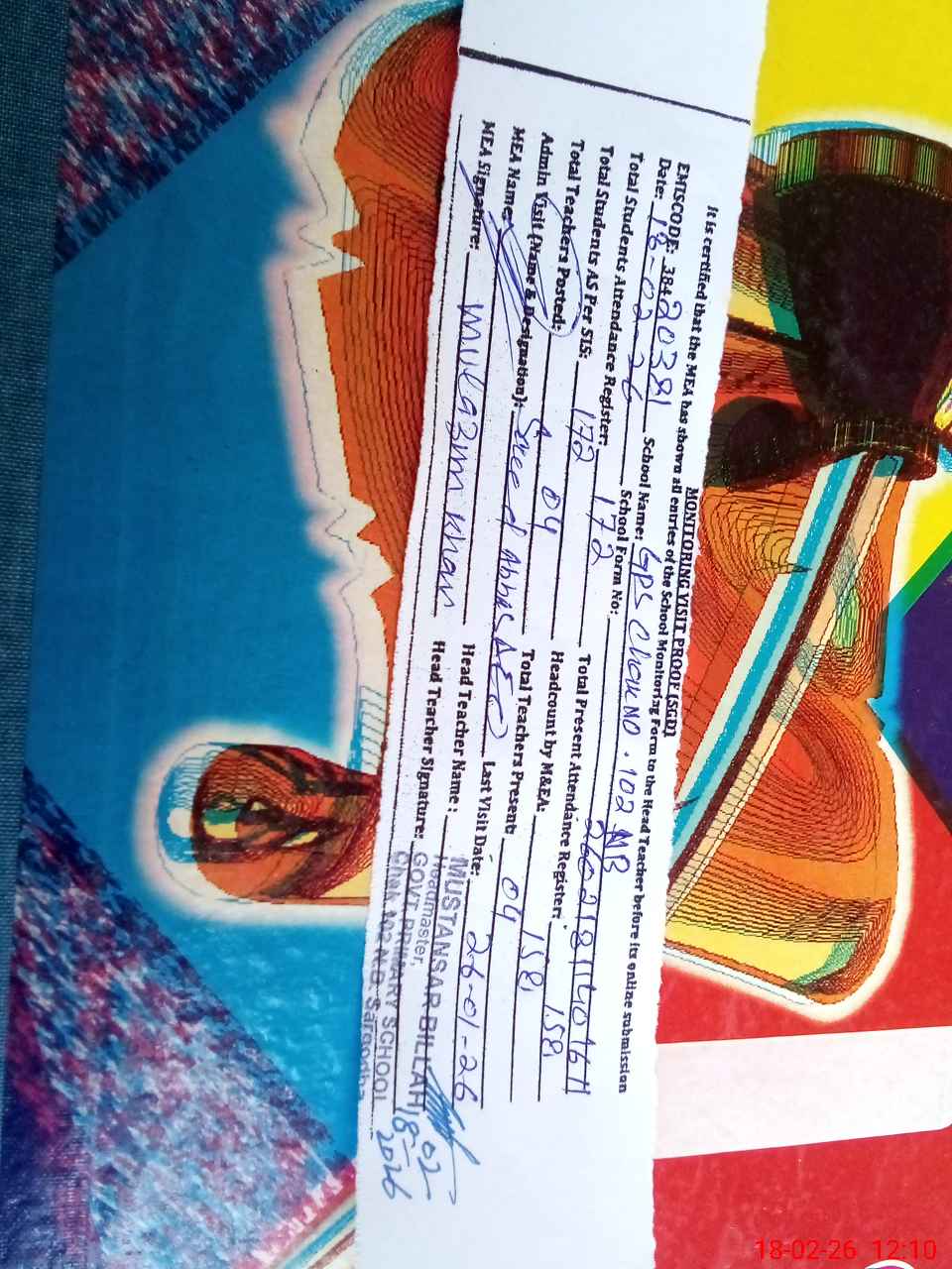 | EMIS Code: 38420381 | Name of School: GPS CHAK NO.102 NB | |||