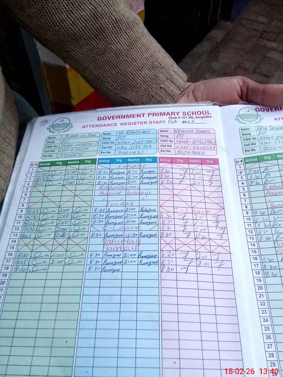 | Name: SL**** -U-DI**** Designation: (School Headmaster's/Headmistress's) PST Phone/Cell Number: 03**** |