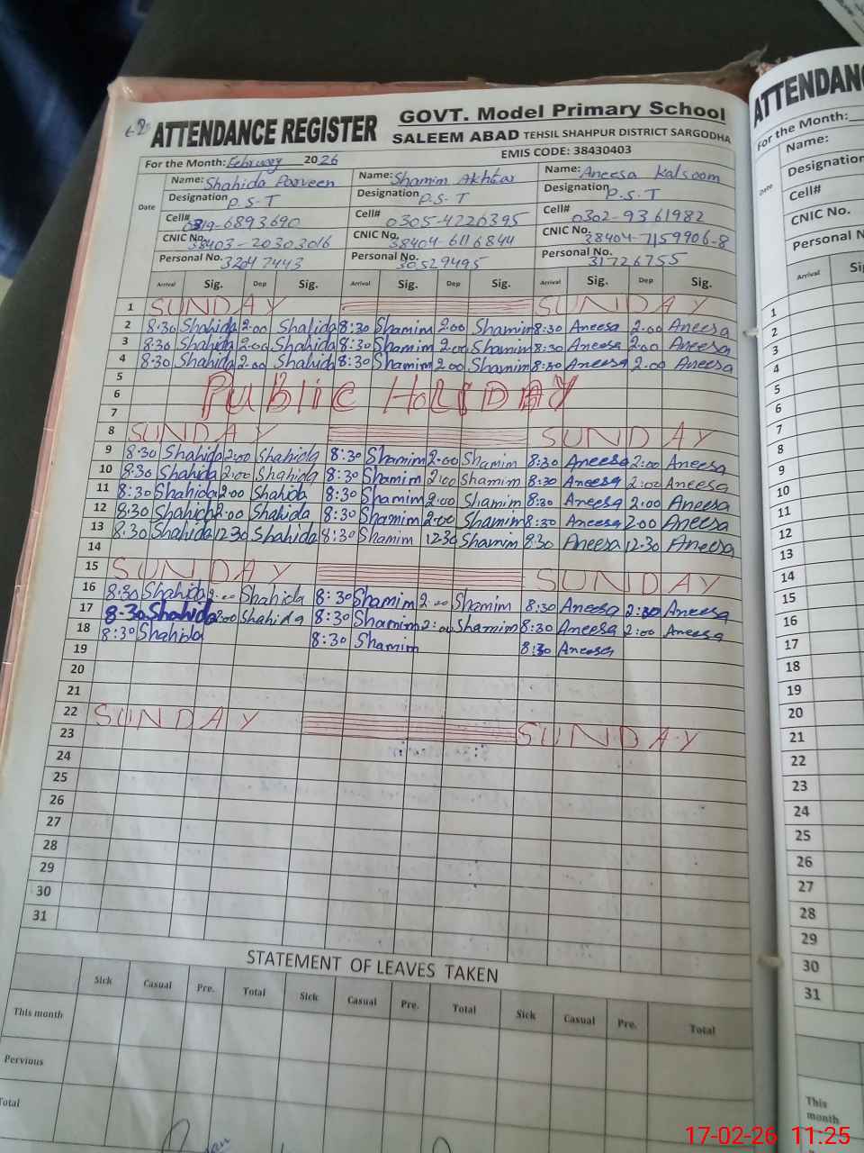 | Name: SH**** PA**** Designation: (School Headmaster's/Headmistress's) PST Phone/Cell Number: 03**** |