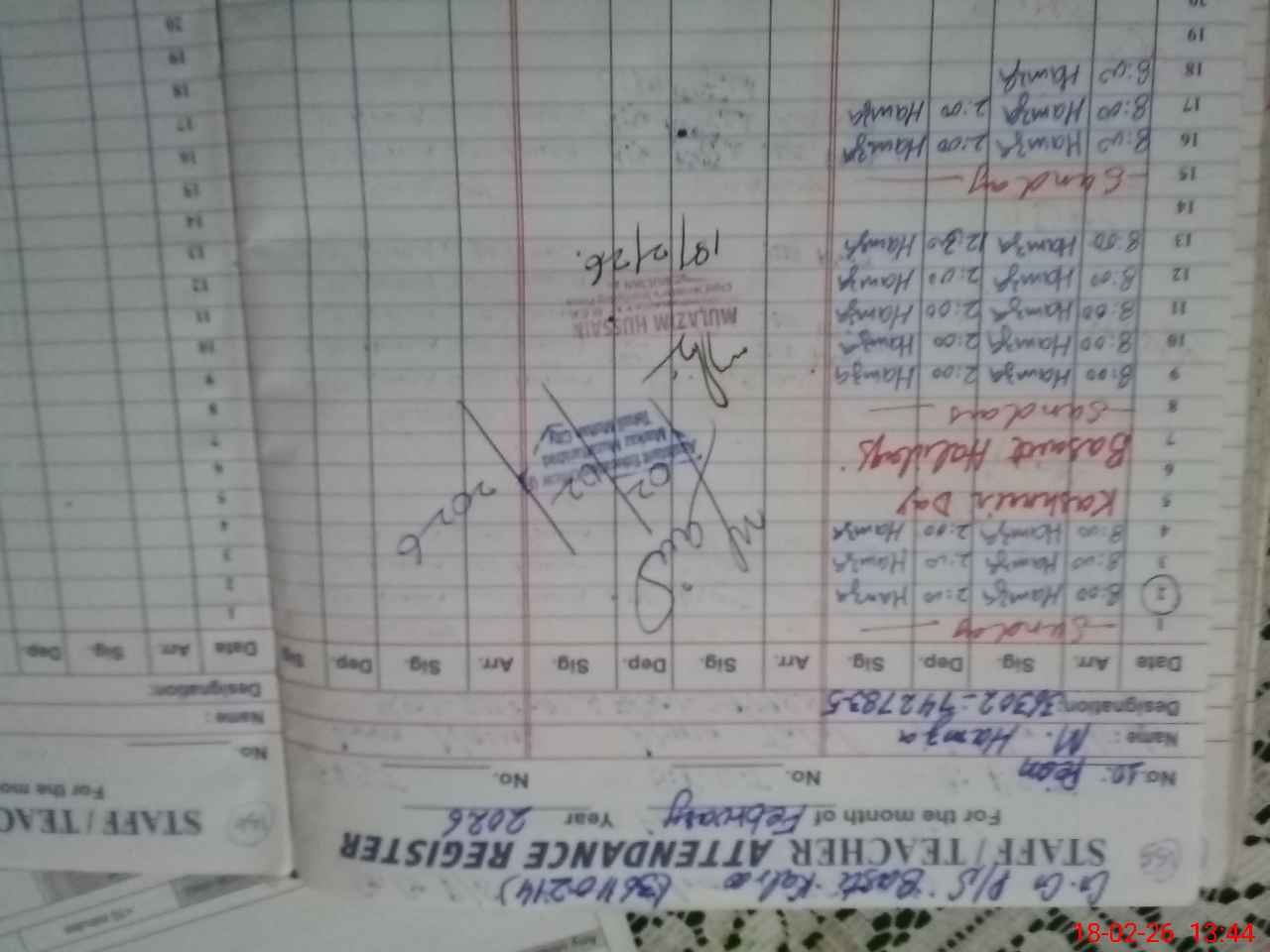 | 36**** | Wa**** Hi**** | PST Arts | Regular | 0 | 0 | 0 | 0 | 0 | 0 | 0 | 0 | 0 | Absent (Un-Authorized) |