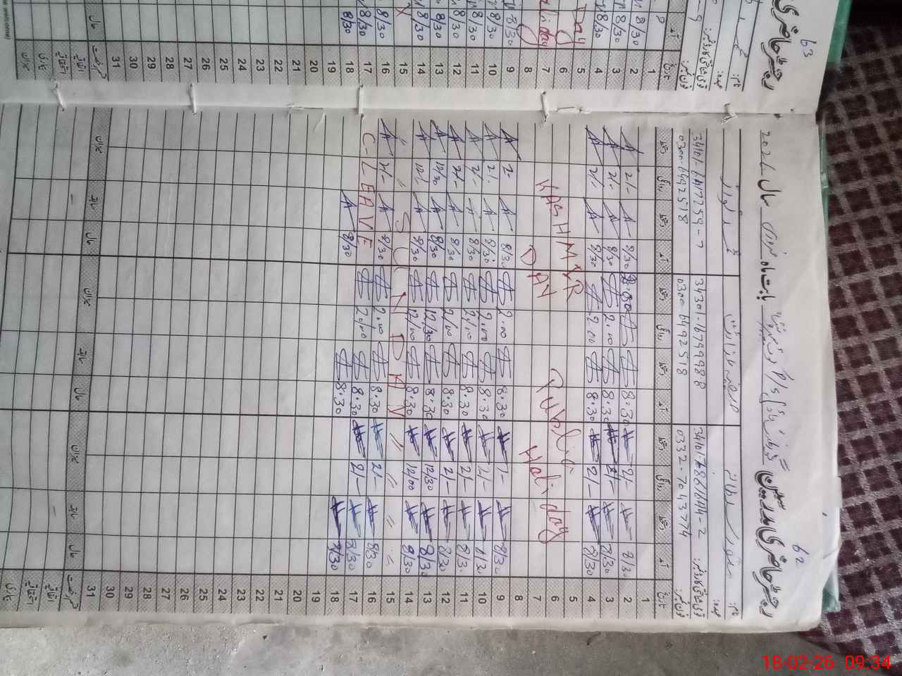 | CNIC | Full Name | Designation | R/C | Absence During Last Calender Month |