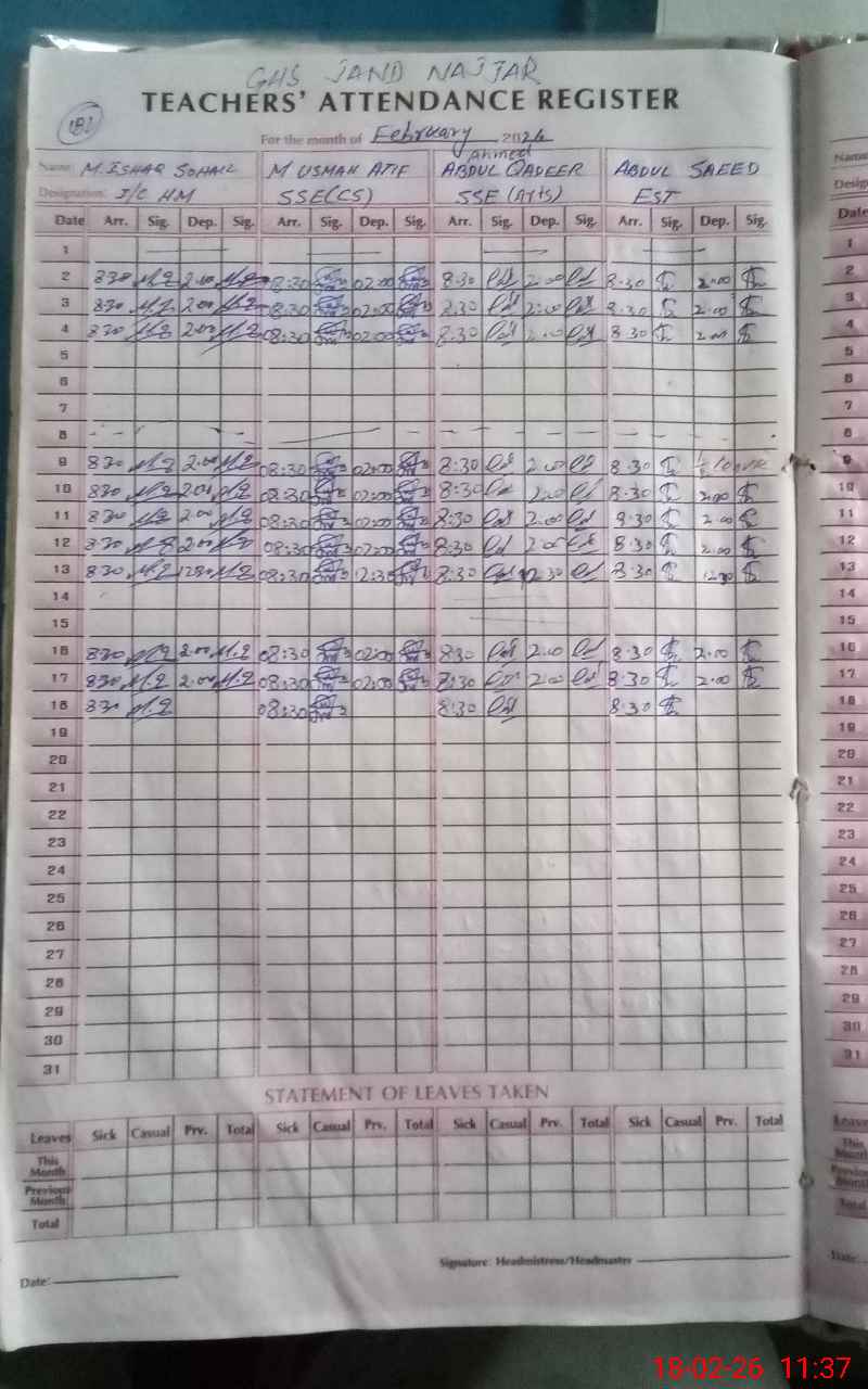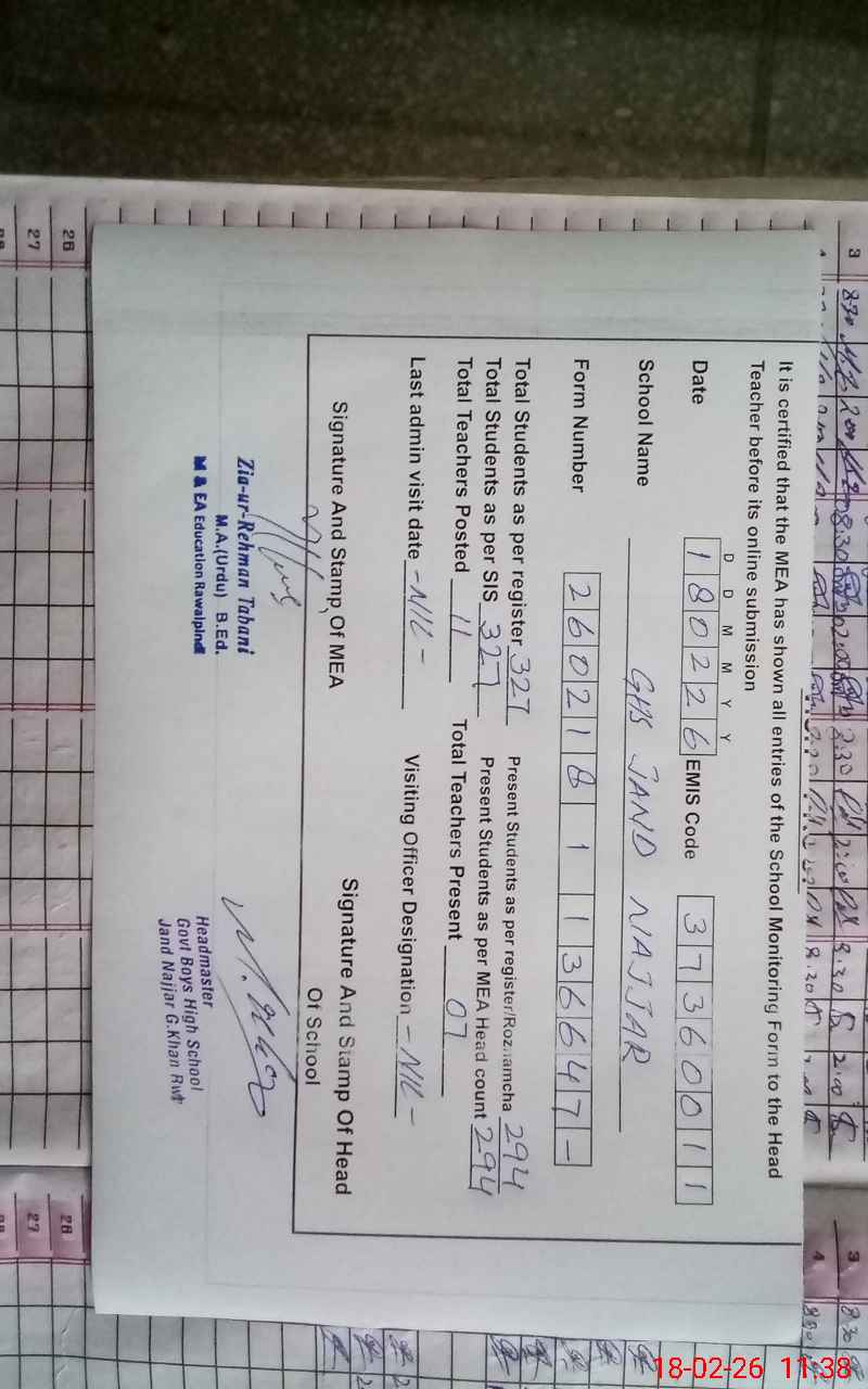 | EMIS Code: 37360011 | Name of School: GHS JHAND NAJJAR | |||