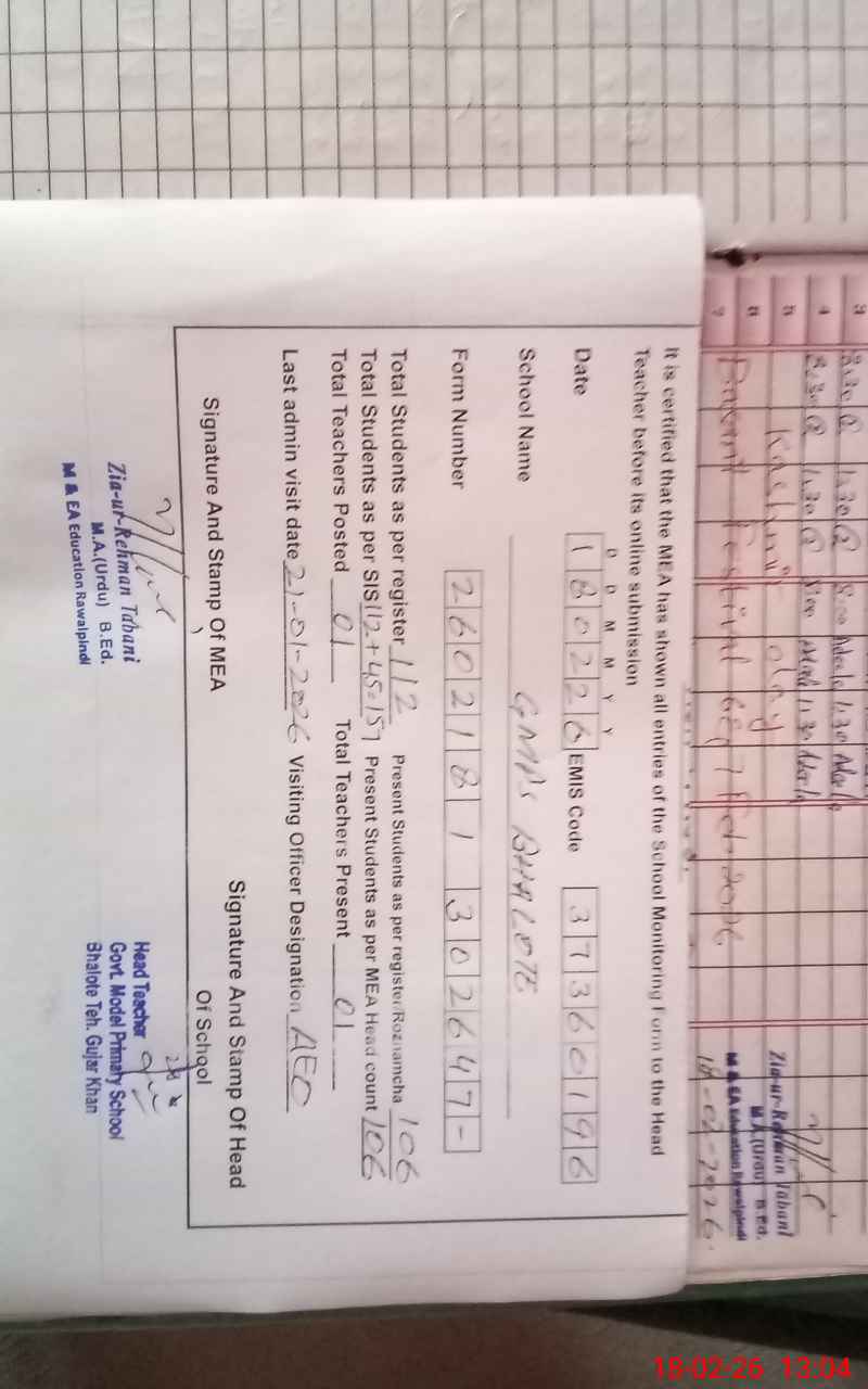 | EMIS Code: 37360196 | Name of School: GPS MODEL BHALOTE | |||