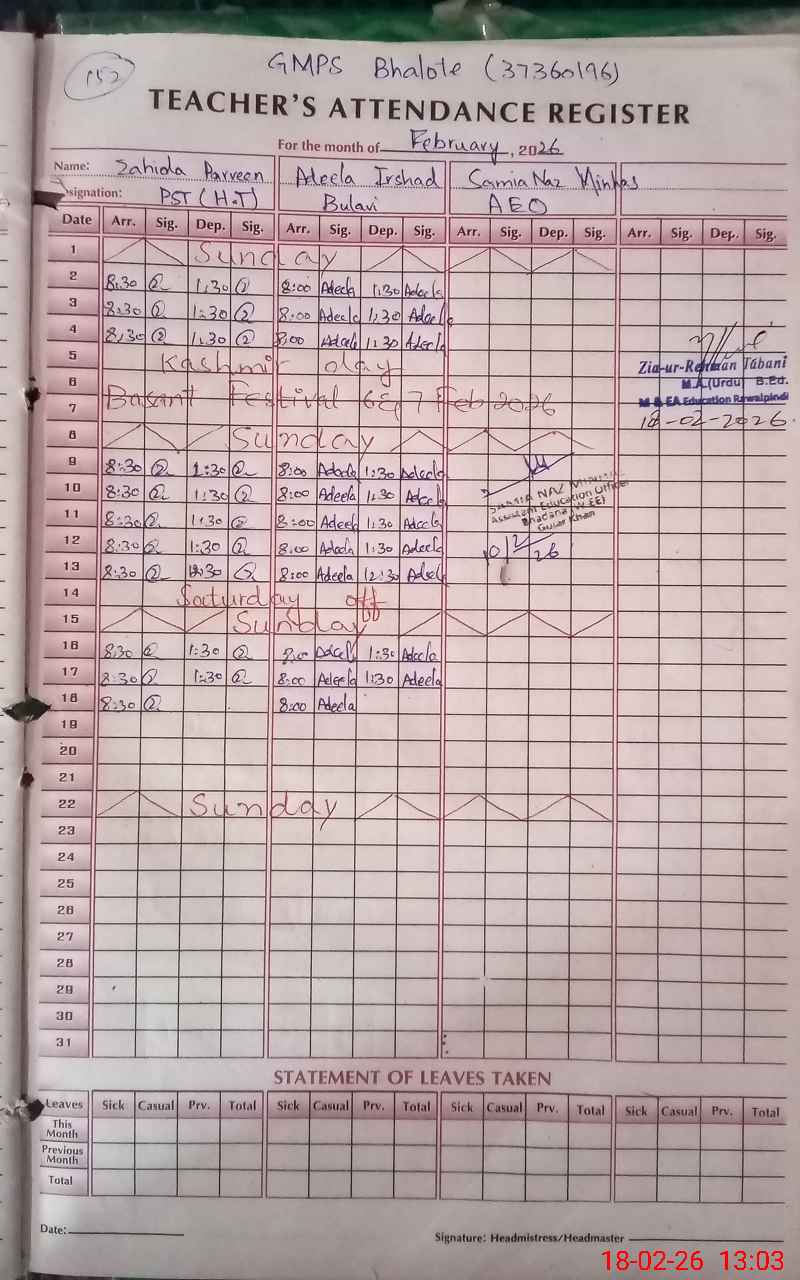 | Name: Za**** Pe**** Designation: (School Headmaster's/Headmistress's) PST Phone/Cell Number: 03**** |
