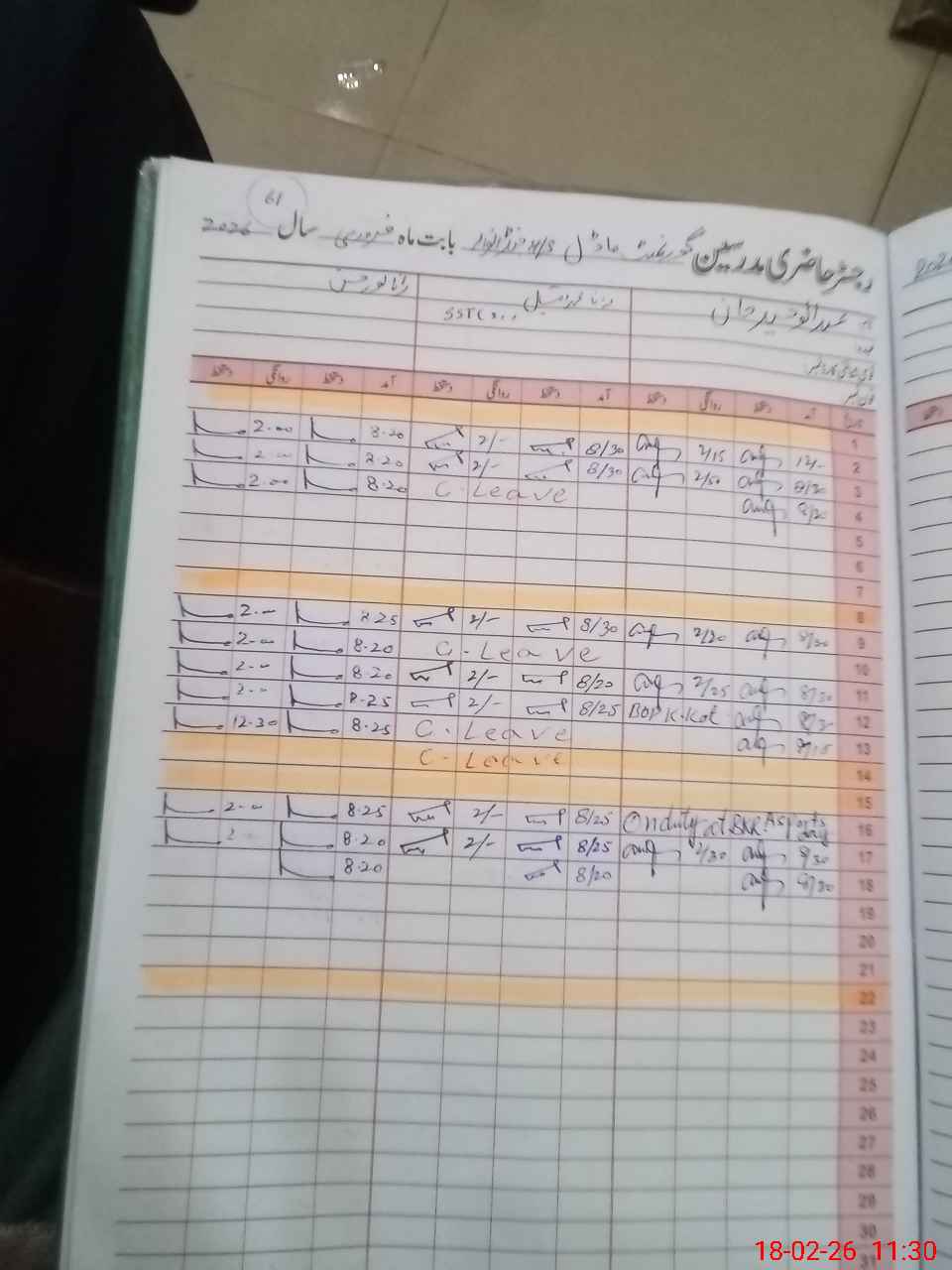 | Leave | Duty | Absent | Maternity | Medical | Ex- Pak |