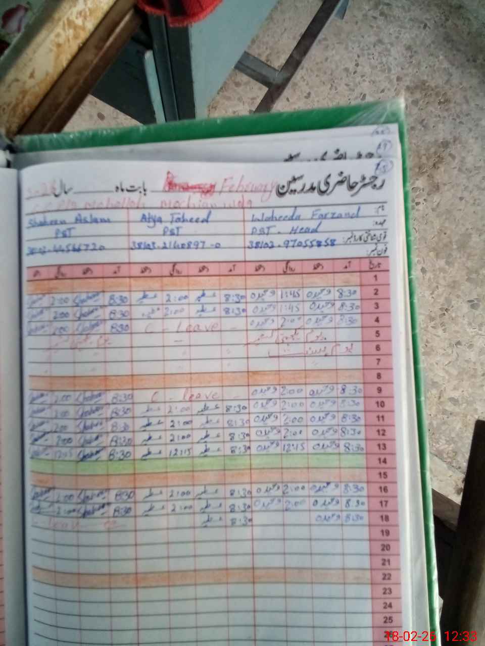 | Leave | Duty | Absent | Maternity | Medical | Ex- Pak |