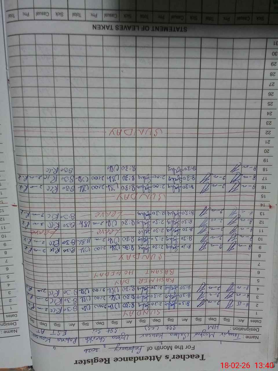 | 35**** | Ad**** Ha**** | SWEEPER | Regular | 0 | 0 | 5 | 0 | 0 | 0 | 0 | 0 | 0 | Absent (Un-Authorized) |