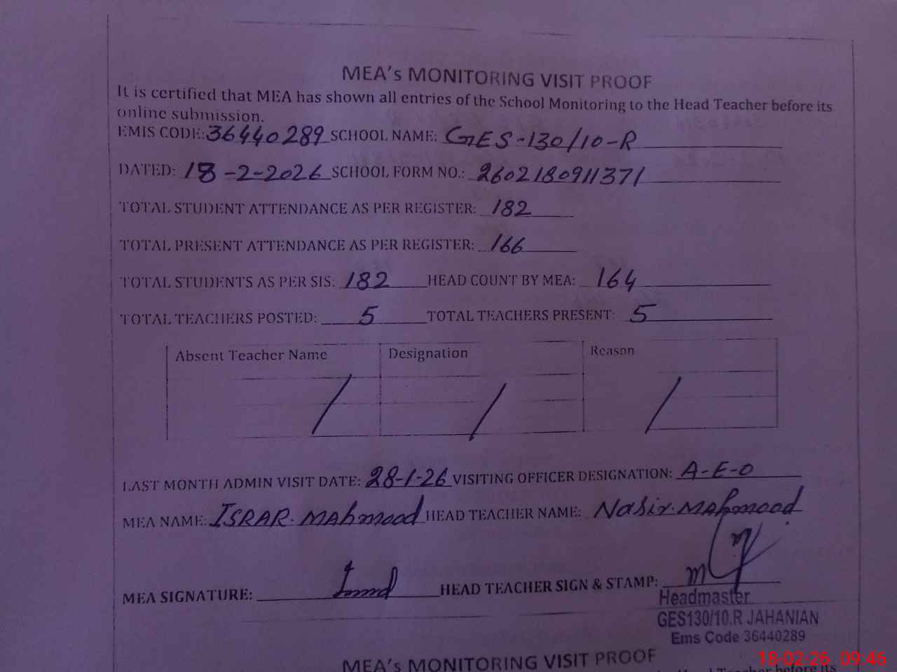 | EMIS Code: 36440289 | Name of School: GES 130/10-R, JAHANIAN | |||
