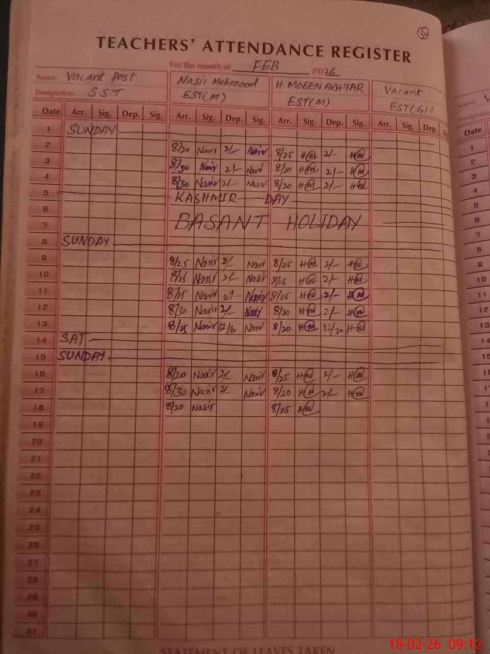 | No. of Students Present - Female | 0 | 0 | 0 | 0 | 0 | 0 | 0 | 0 | 0 | 0 | 0 | |||||