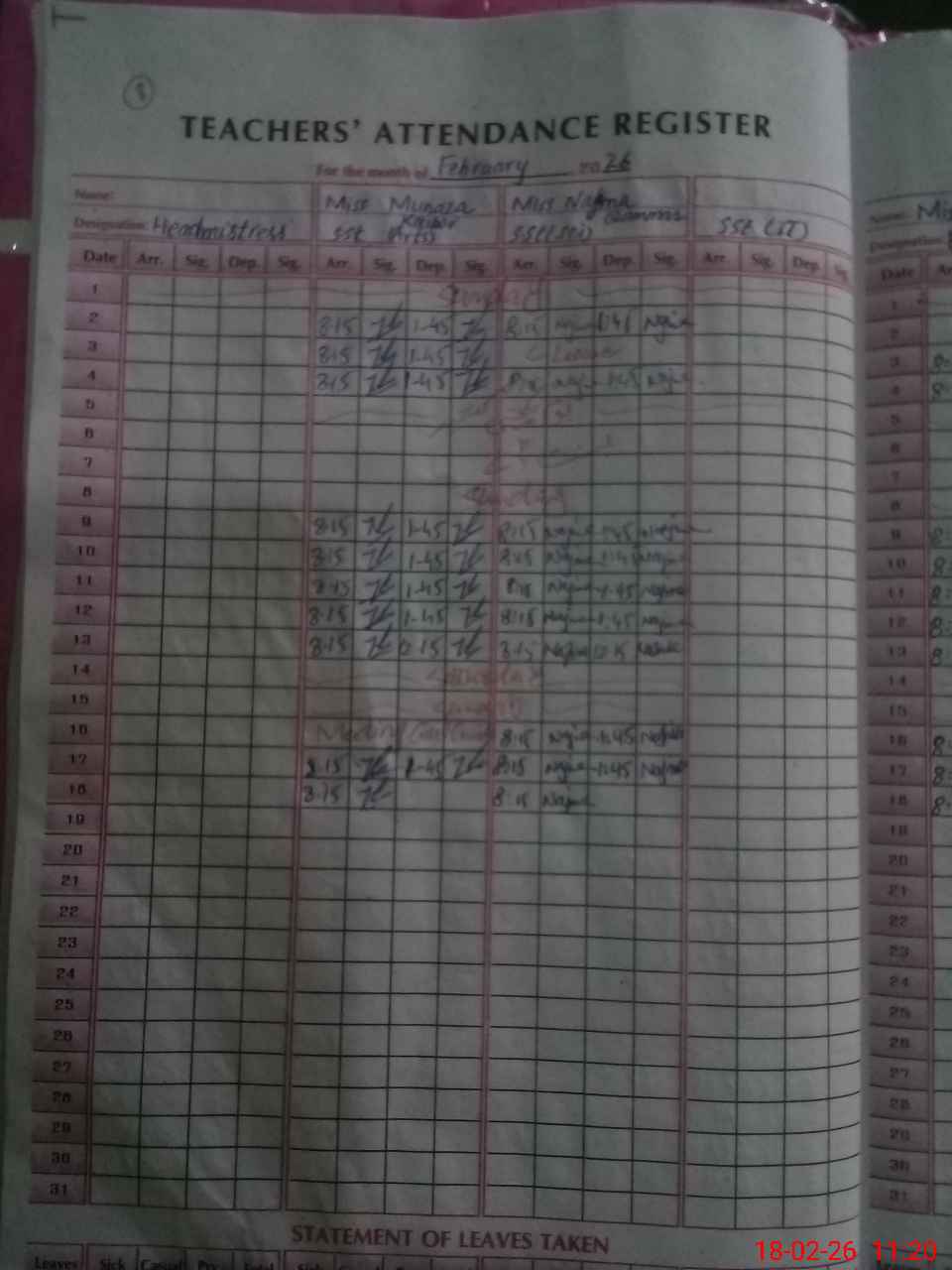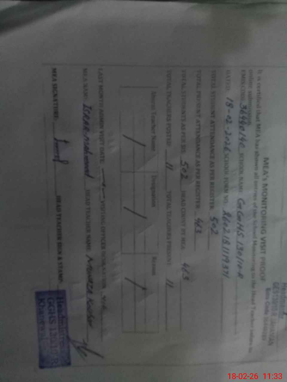| Attendance Register | Head Teacher | MEA with School | Visit Proof |
