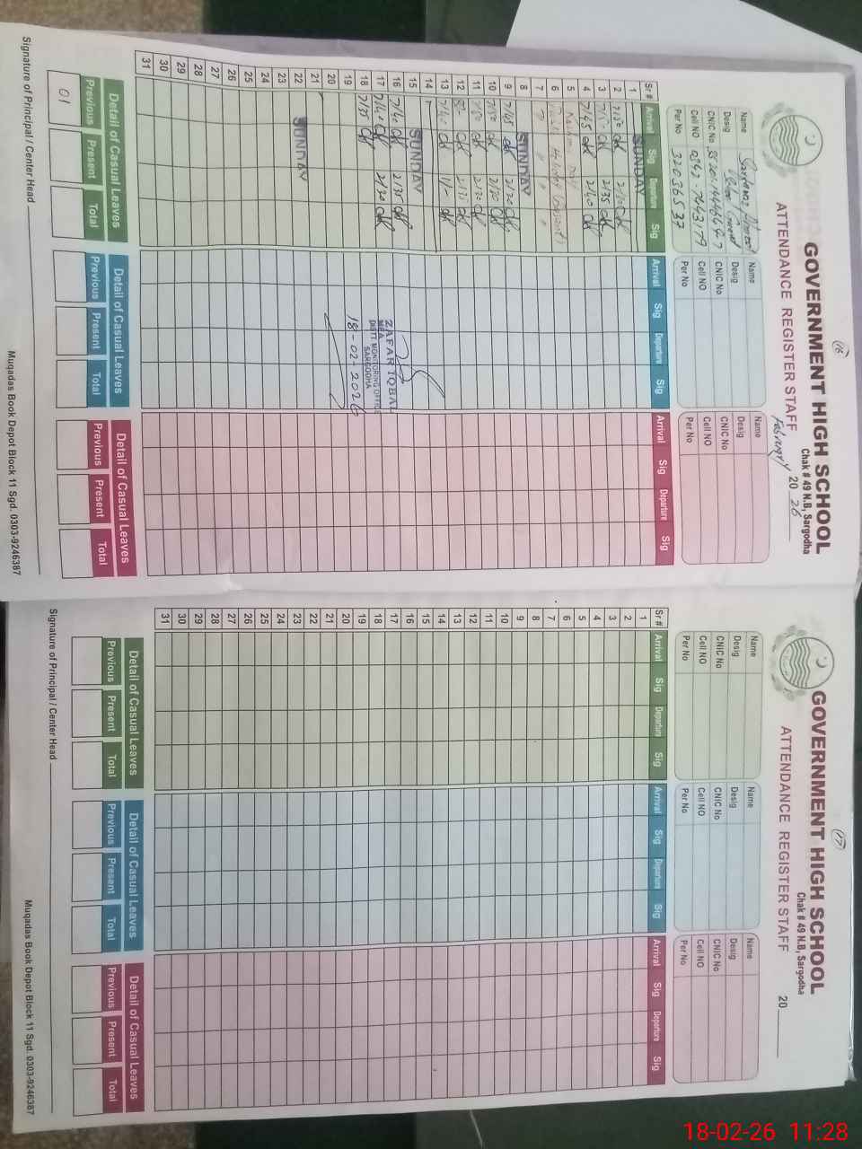 | Name: Kh**** Re**** Designation: (School Headmaster's/Headmistress's) H. M Phone/Cell Number: 03**** |