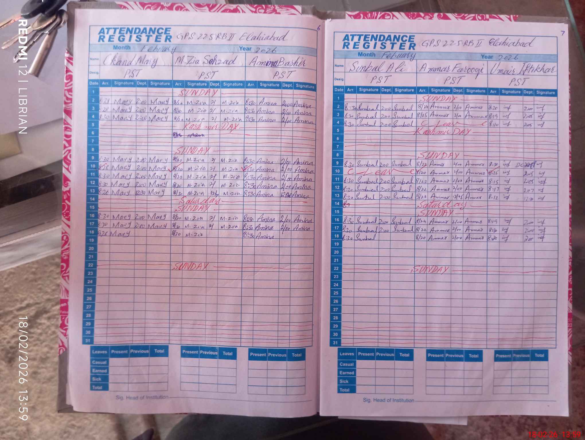 | Leave | Duty | Absent | Maternity | Medical | Ex- Pak |
