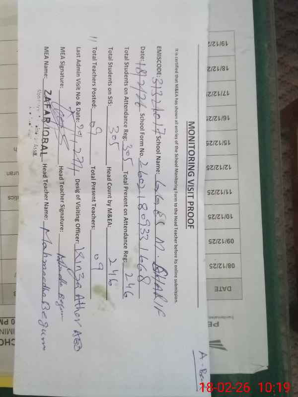 | Certified that this School was Inspected by the Undersigned MEA/DMO Today and the Information Stated Above is as Per Record. | |||||