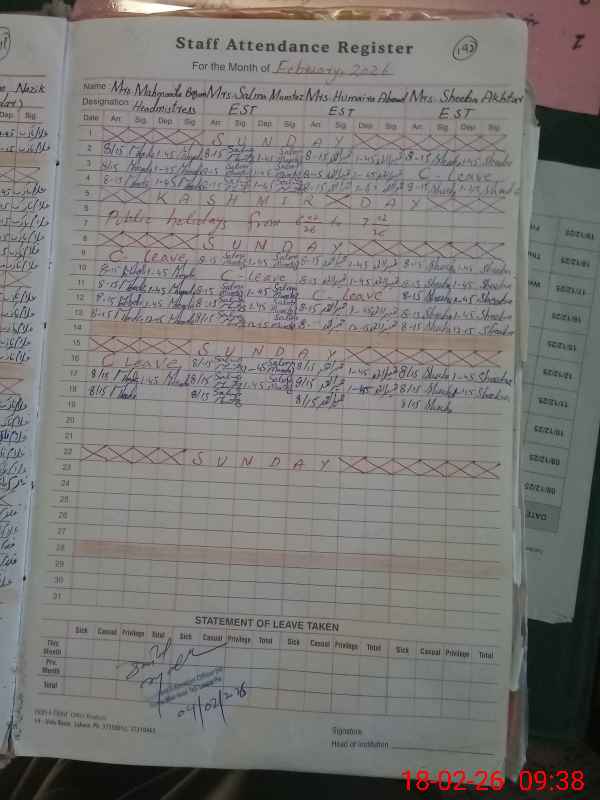 | Attendance Register | Head Teacher | MEA with School | Visit Proof |