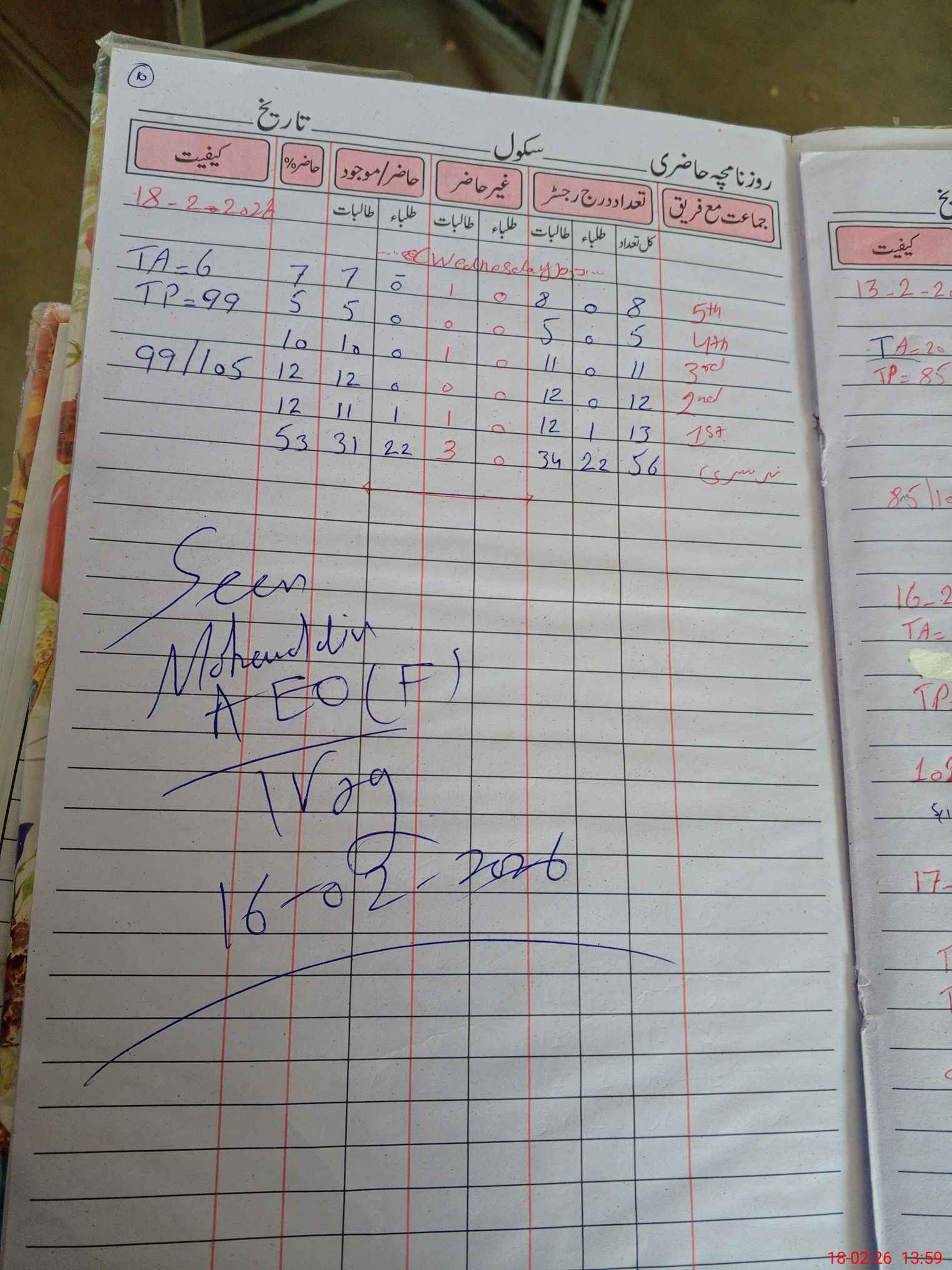 | Monitoring Date: 18-02-2026 | Start Time: 18-02-2026 12:58 PM | End Time: 18-02-2026 02:02 PM | Name of MEA: Mo**** udDi**** Kh**** | |