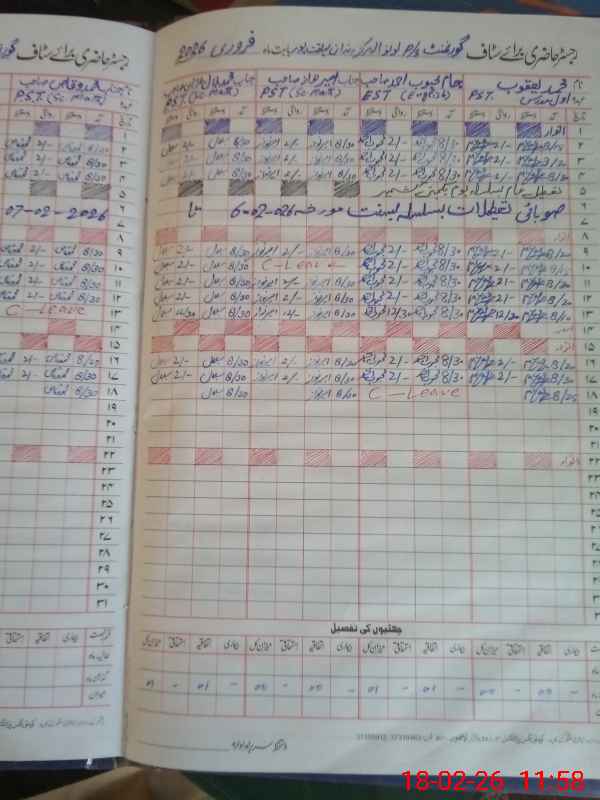 | CNIC | Full Name | Designation | R/C | Absence During Last Calender Month |