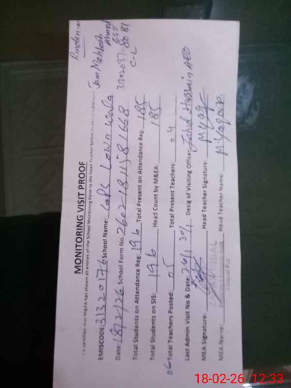 | EMIS Code: 31320176 | Name of School: GPS LOWN WALA | |||