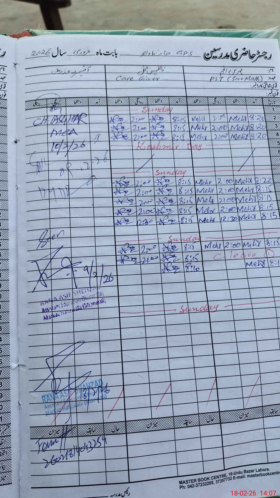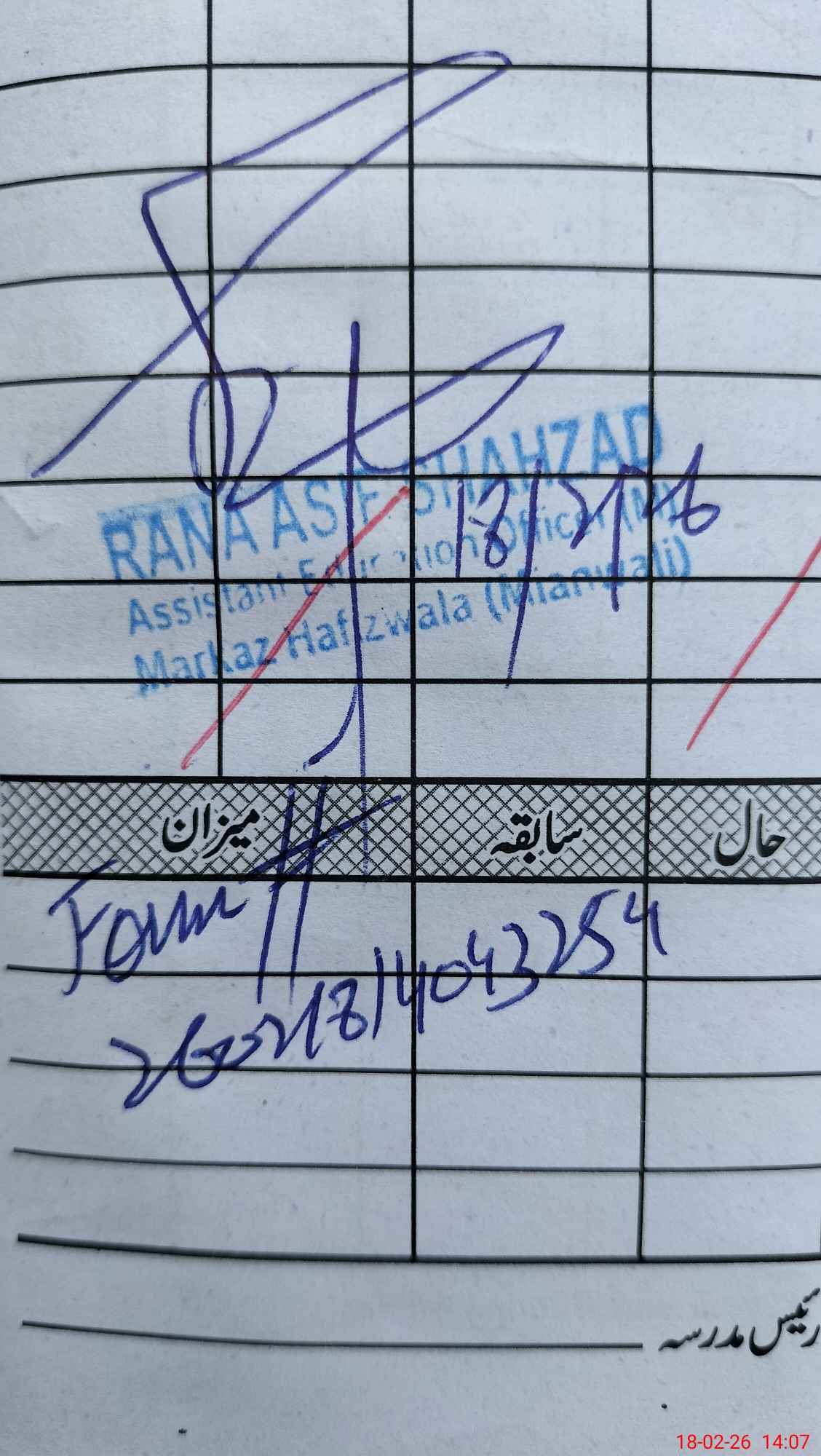 | Name: Mu**** Iq**** Kh**** Designation: (School Headmaster's/Headmistress's) PST Phone/Cell Number: 03**** |