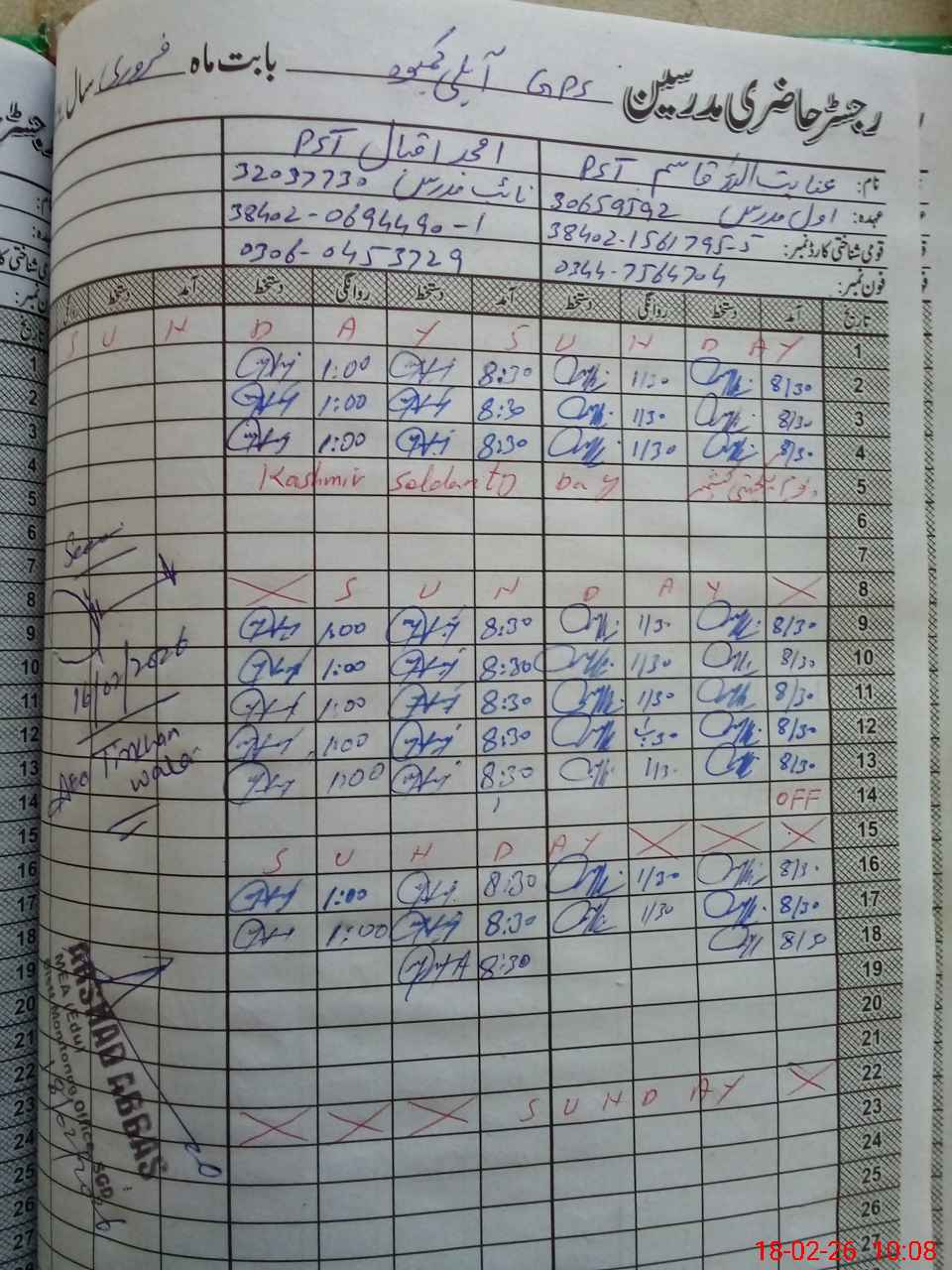 | Name: AN**** QA**** Designation: (School Headmaster's/Headmistress's) PST Phone/Cell Number: 03**** |