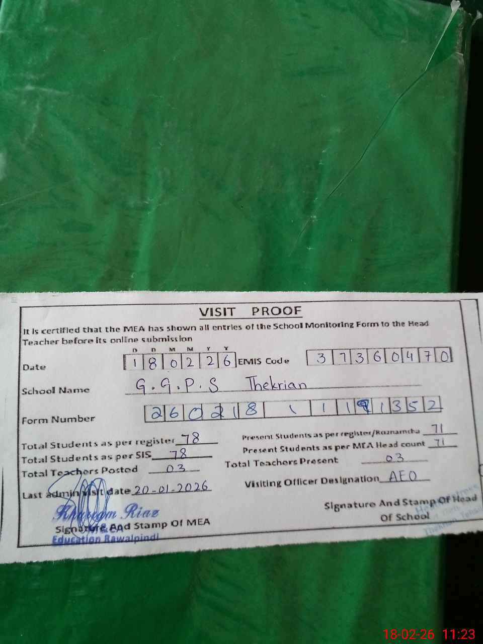 | EMIS Code: 37360470 | Name of School: GGPS THAKRIAN | |||
