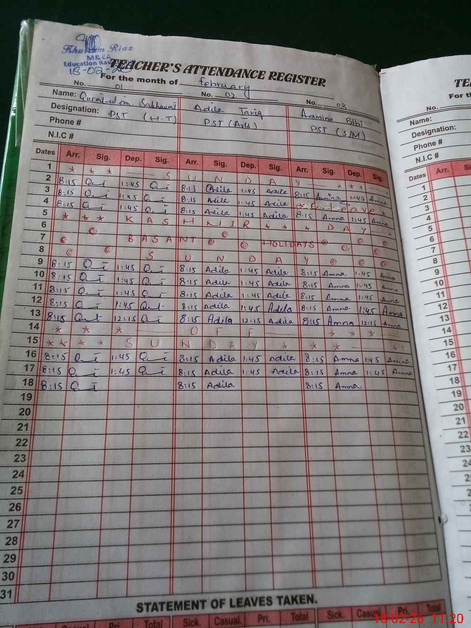 | Name: Qu**** UlAi**** Sa**** Designation: (School Headmaster's/Headmistress's) PST Phone/Cell Number: 03**** |