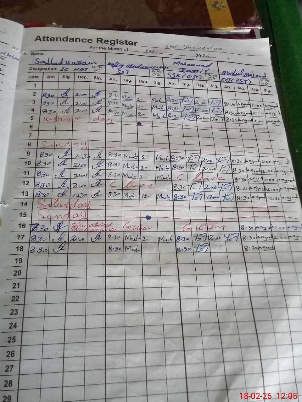 | Monitoring Date: 18-02-2026 | Start Time: 18-02-2026 11:53 AM | End Time: 18-02-2026 12:51 PM | Name of MEA: Kh**** Ri**** | |