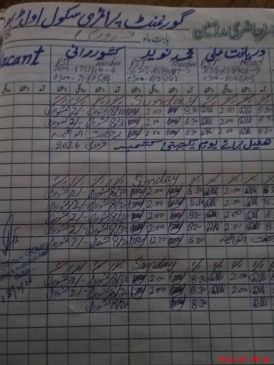| Name: Da**** Al**** Designation: (School Headmaster's/Headmistress's) PST Phone/Cell Number: 03**** |