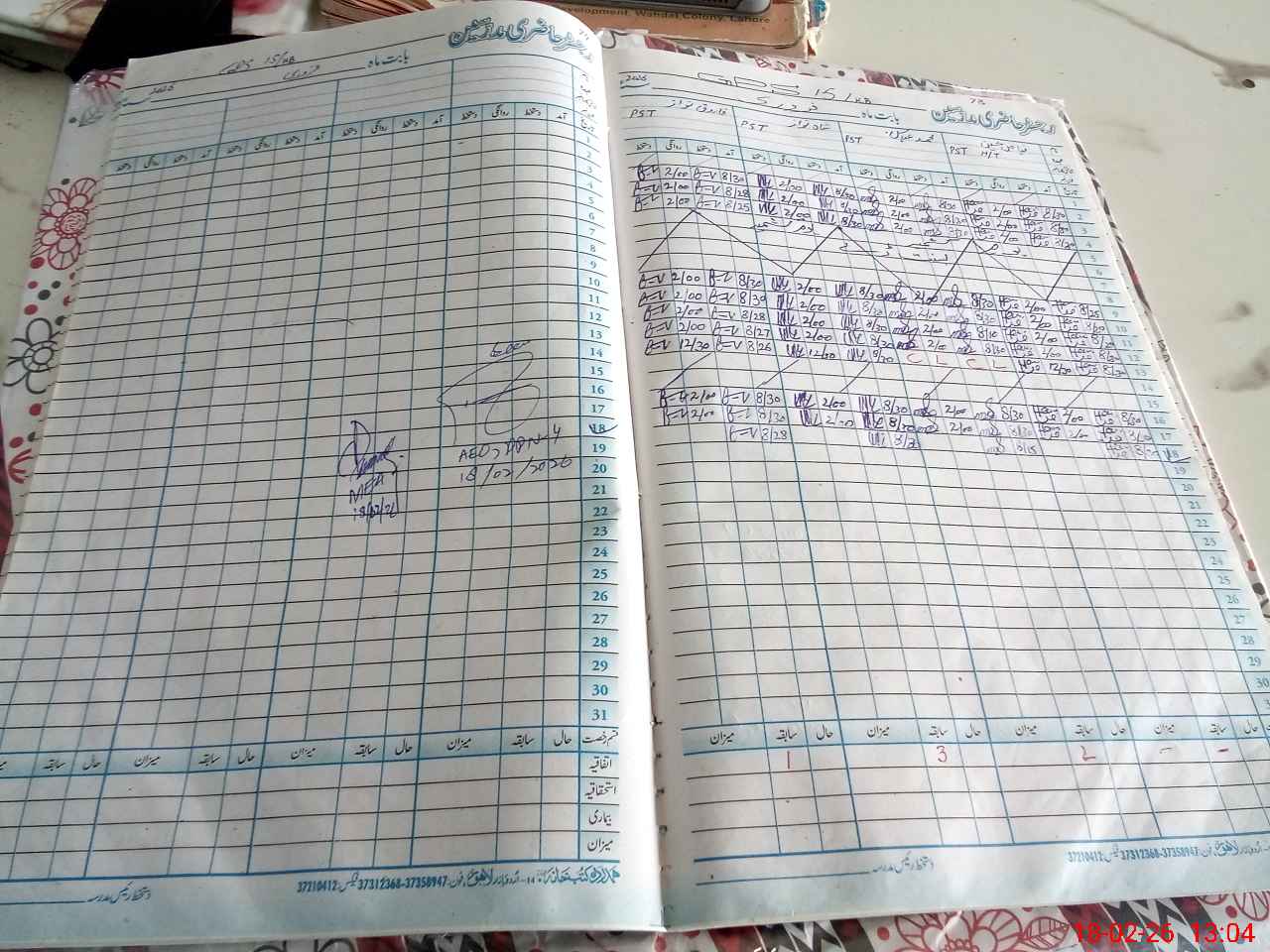 | CNIC | Full Name | Designation | R/C | Absence During Last Calender Month |