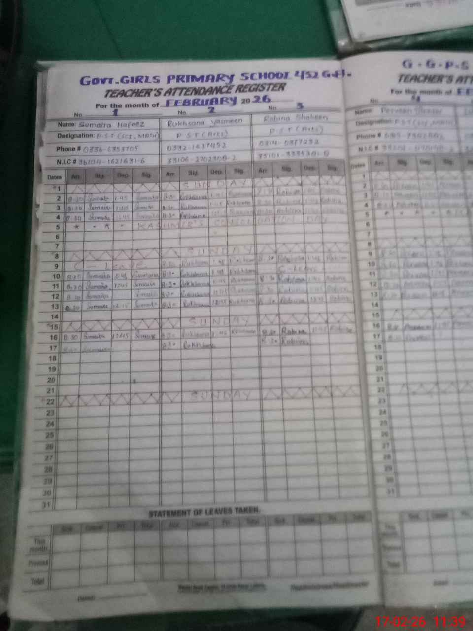 | Name: SU**** HA**** Designation: (School Headmaster's/Headmistress's) PST Phone/Cell Number: 03**** |