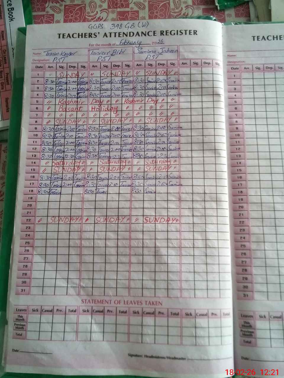 | Name: TA**** KO**** Designation: (School Headmaster's/Headmistress's) PST Phone/Cell Number: 03**** |