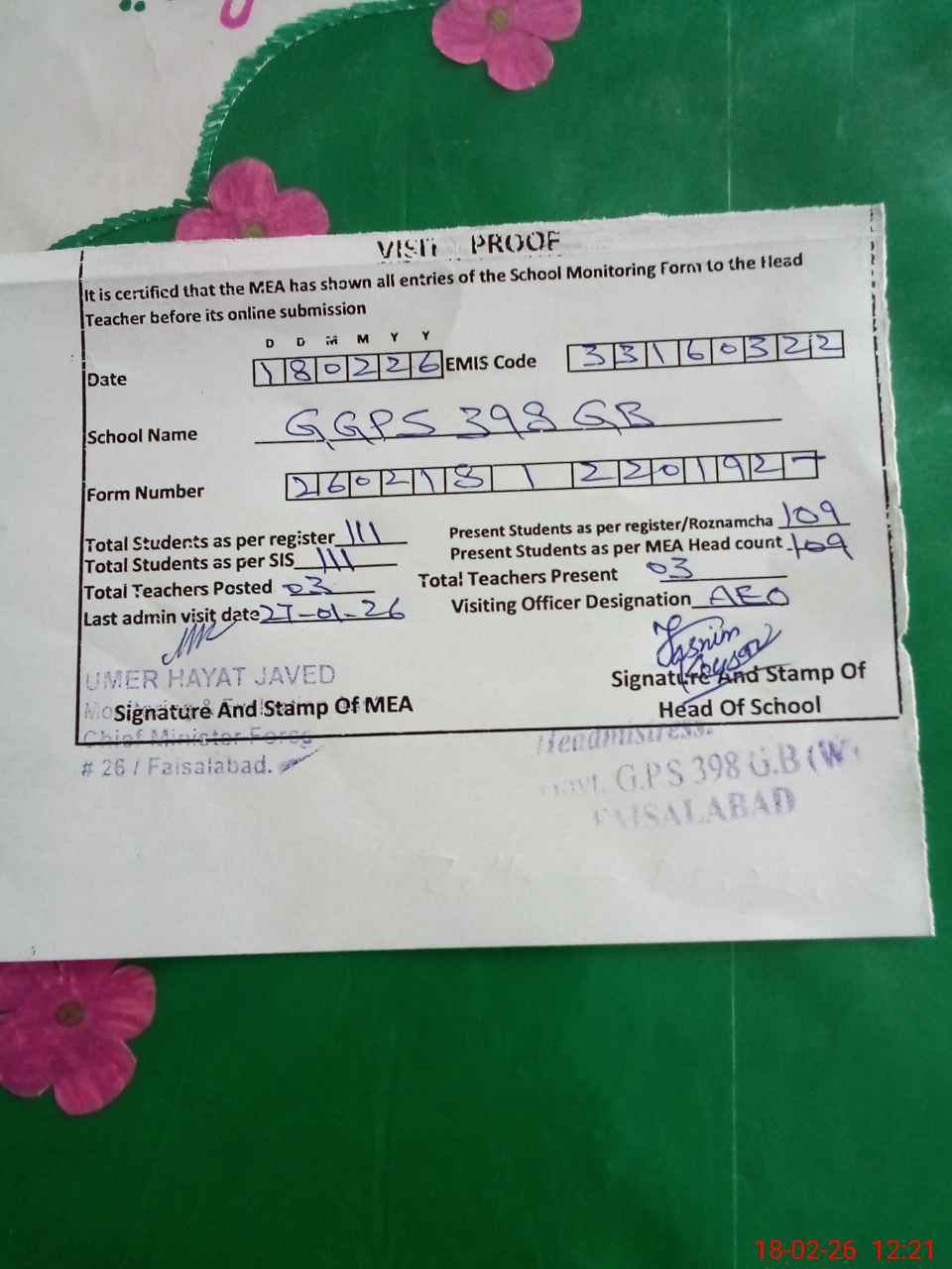 | EMIS Code: 33160322 | Name of School: GGPS 398/GB | |||