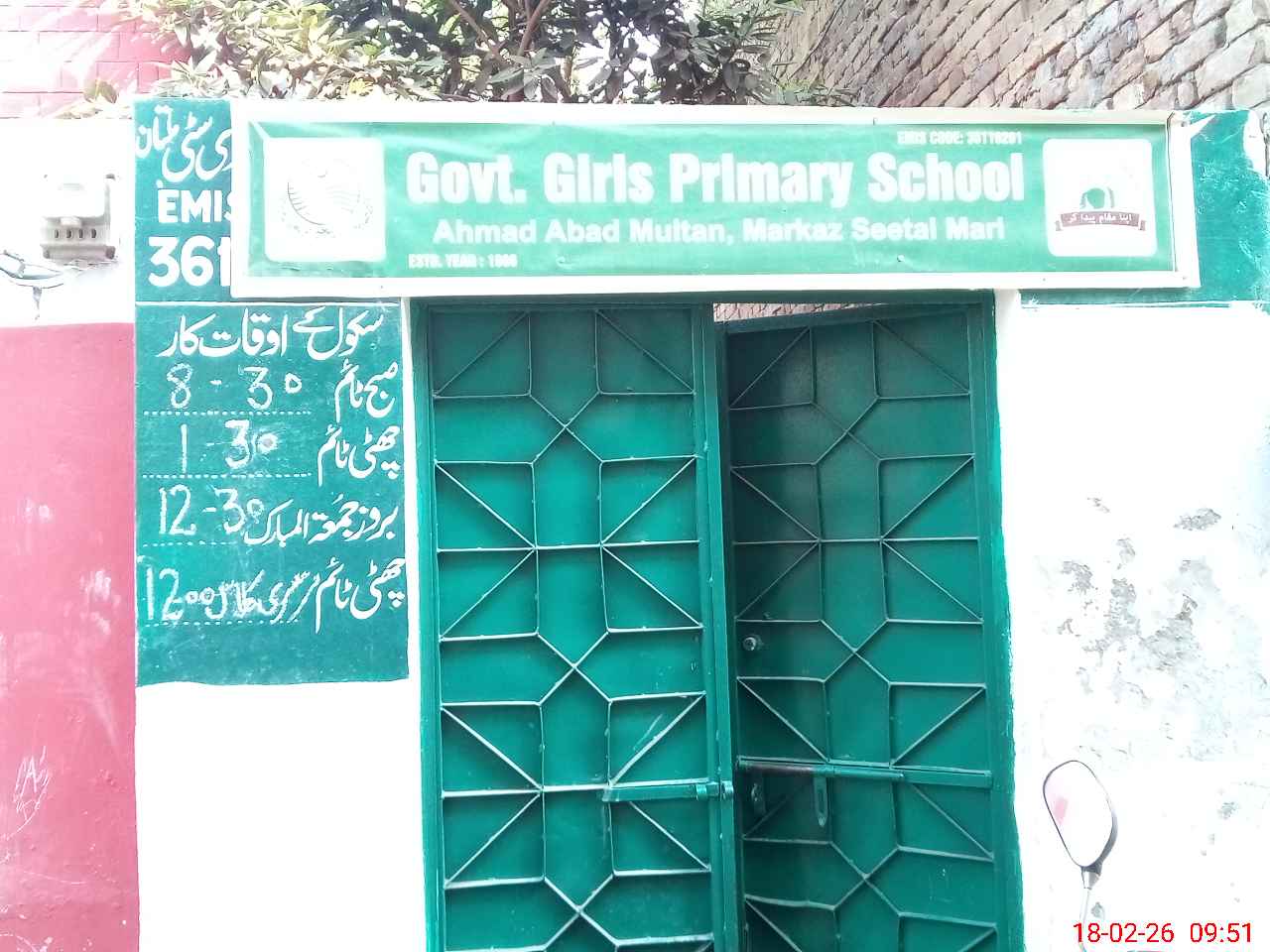 | District: MULTAN | Tehsil: MULTAN CITY | Markaz: SEETAL MARI - FEMALE | Level: Primary | |